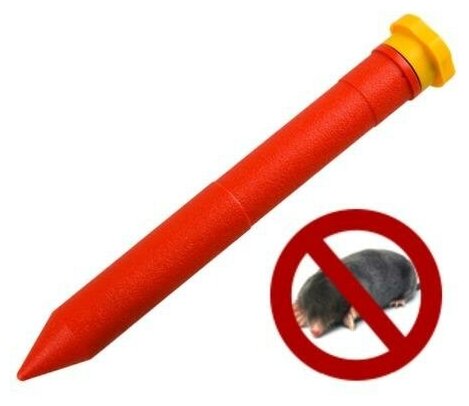 Отпугиватель кротов GRINDA 8-422340 поможет избавиться от грызунов-вредителей или предотвратить их появление в вашем саду. Принцип работы прибора основывается на излучении волн низкой частоты, что негативно сказывается на нервной системе грызунов. Средний радиус действия ~12м (max 500м2). Отпугиватель работает от щелочных D-батареек, которых хватает примерно на 4-6 месяцев. Материал корпуса выполнен из пластика.