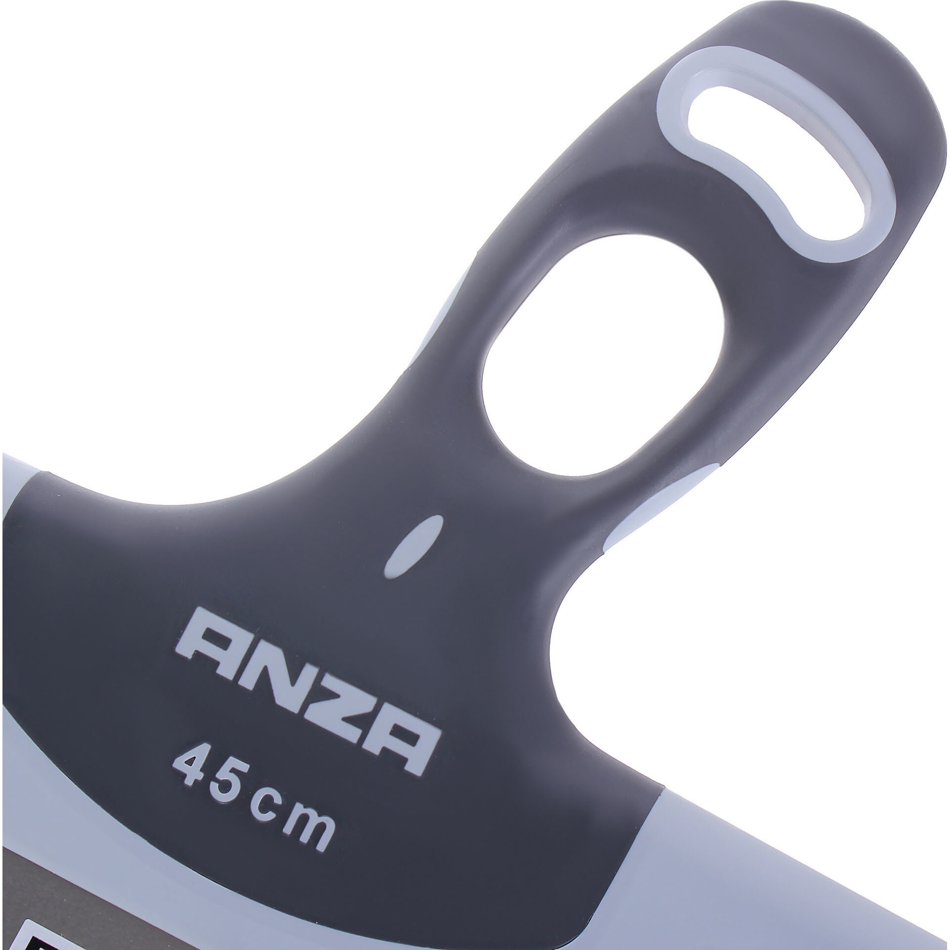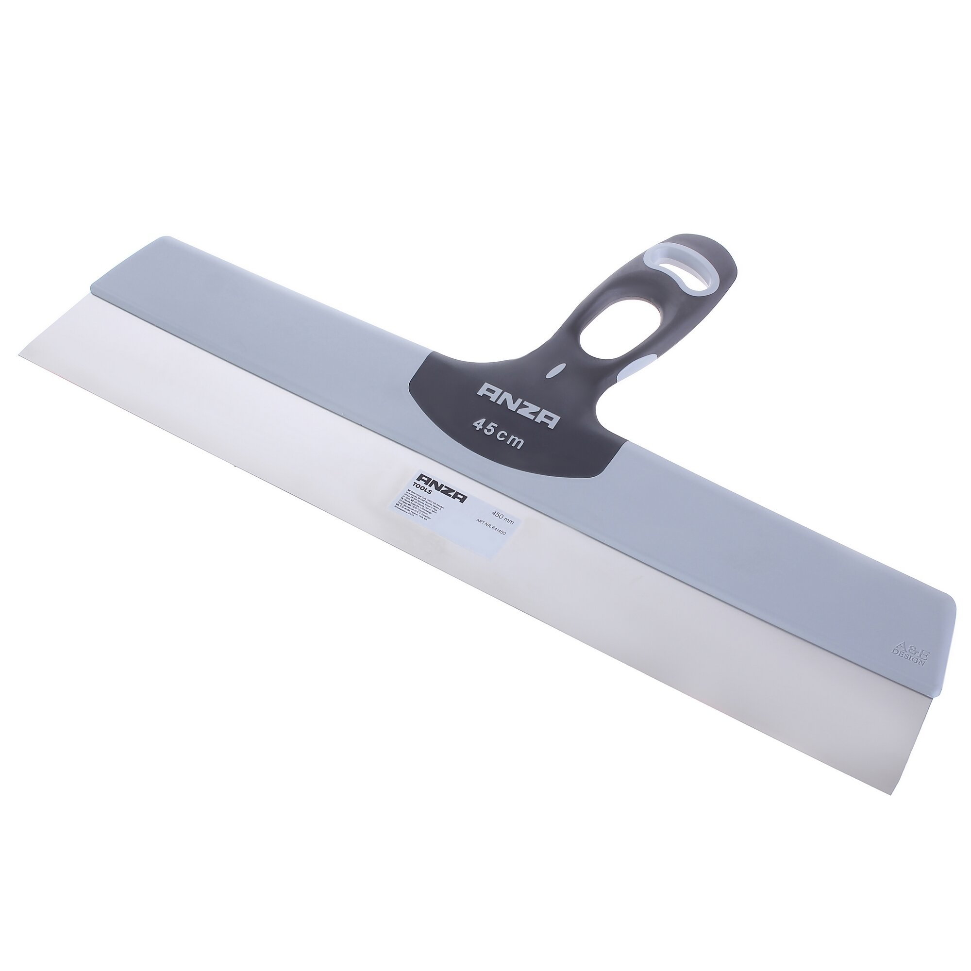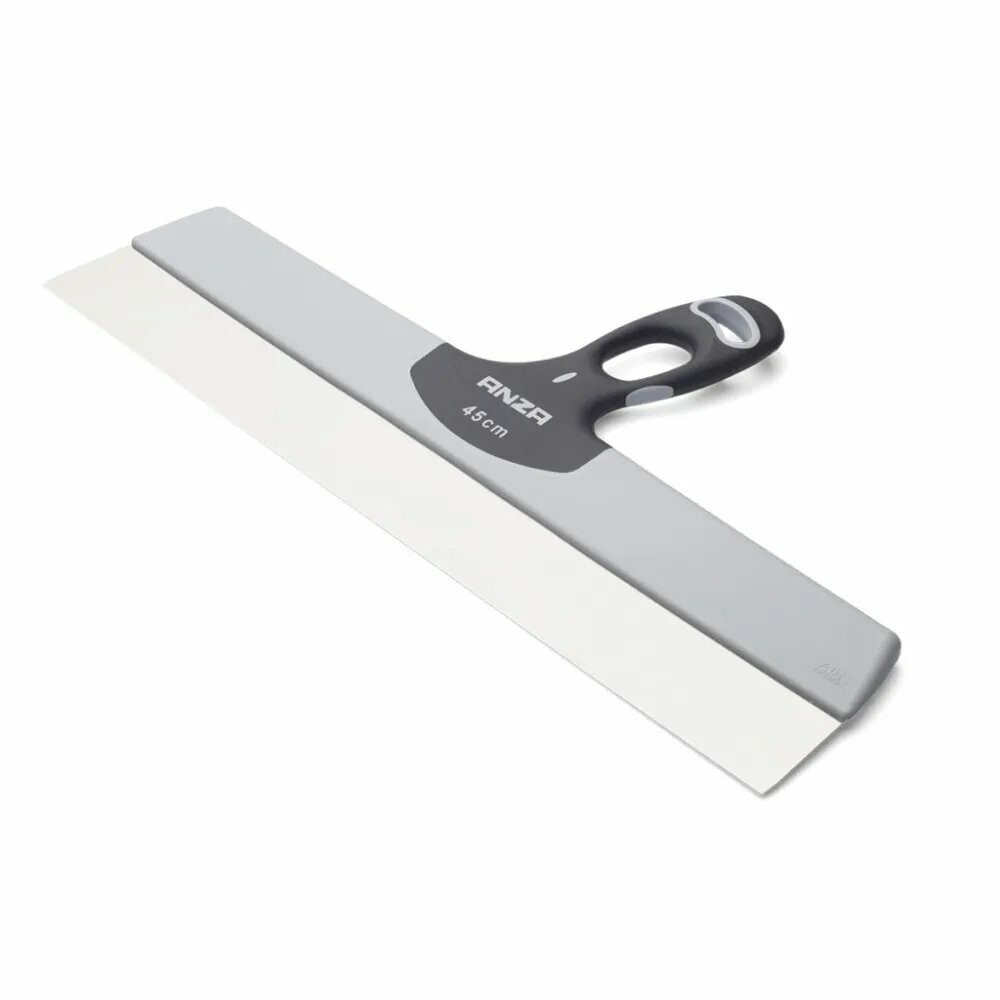 Шпатель Anza малярный используется для выравнивания различных поверхностей. Прямоугольное лезвие шириной 45 см формирует симметричные ровные полосы строительной смеси. Полотно изготовлено из нержавеющей стали, материал устойчив к коррозии и износу. После использования легко очищается с помощью воды. Шпатель изготовлен в Швеции, гарантия — 5 лет. Инструмент для внутреннего и наружного применения — отделки фасадов, выравнивания поверхностей внутри помещения. Двухкомпонентная рукоятка для удобного хвата. Подходит для профессиональных и домашних мастеров.