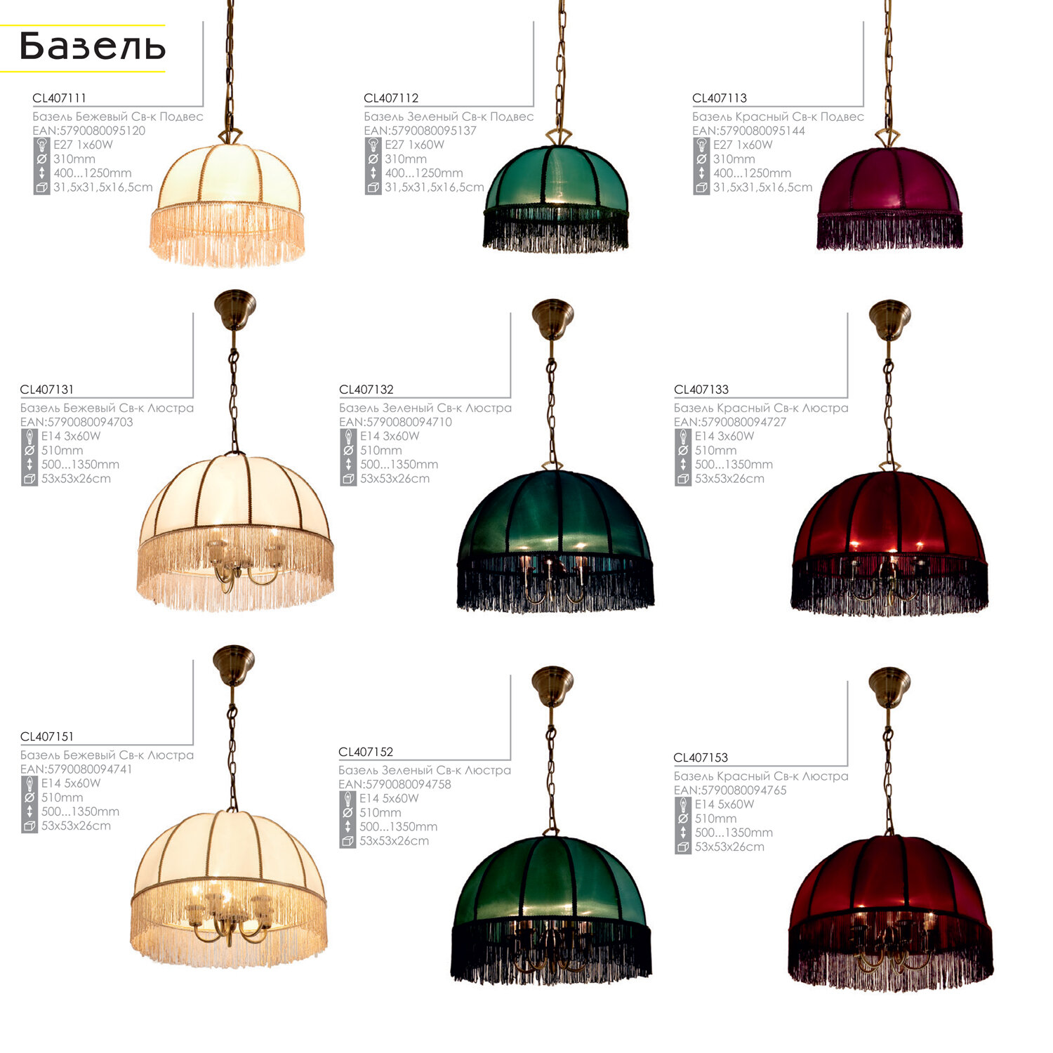 - Citilux Базель CL407133 Люстра подвесная с бордовым абажуром