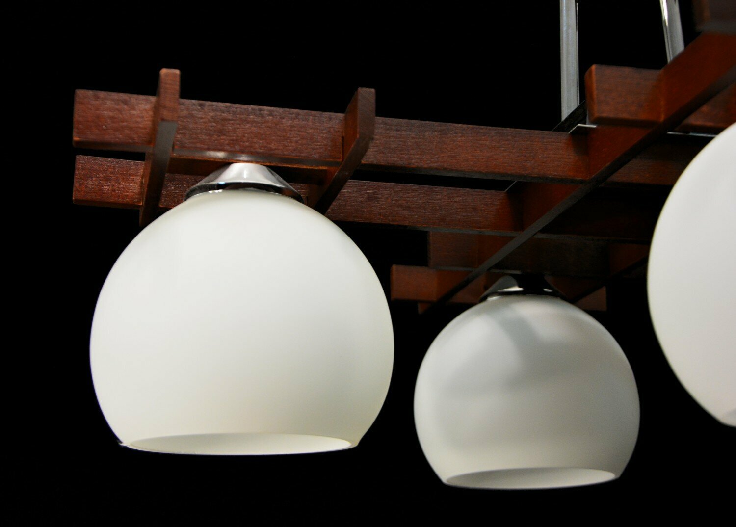Модель потолочной деревянной люстры CL114141 компании Ситилюкс (Дания) выполнена в оригинальном современном стиле. В основании люстры сочетаются темное дерево и хромированный металл, сферические плафоны сделаны из молочно-белого стекла. Площадь освещения - 10-12м2 при невысоком потолке (исходя из габаритов модели). Установить люстру можно в столовой, в гостиной, в коридоре, на балку. Стиль интерьера может быть как строгий современный, так и этничекий.