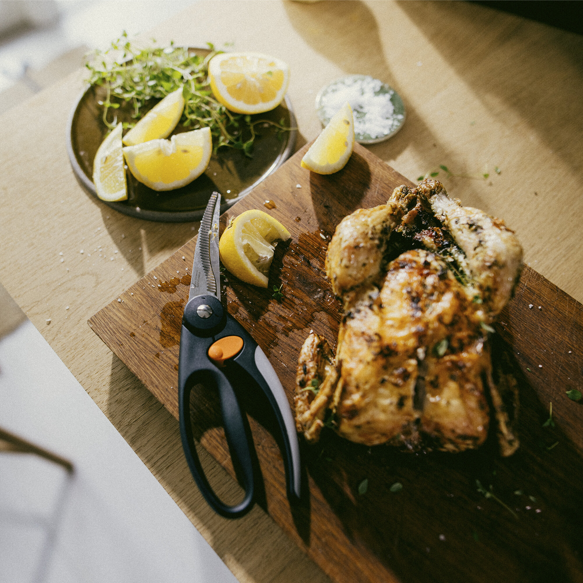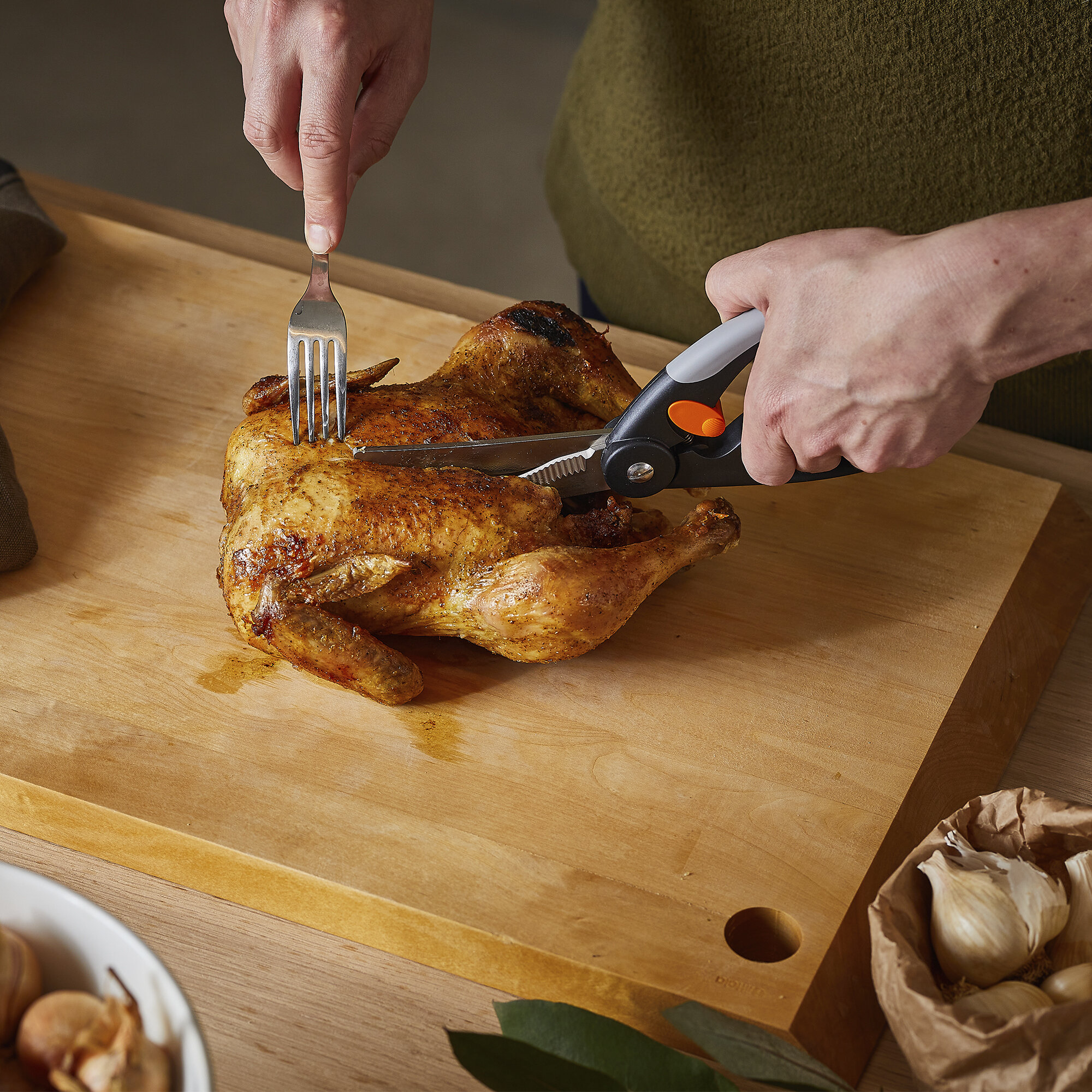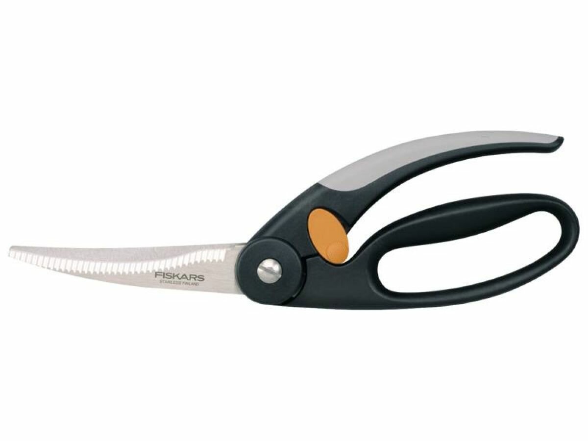 Ножницы для птицы Фискарс помогут вам быстро справиться с разделкой тушки птицы. Ножницы обладают прочным острым лезвием, которое не ржавеет от влаги. Обладают небольшим весом, а также эргономичной ручкой, которая позволяет распределять нагрузку на мышцы, от чего они меньше устают. Инструмент устойчив к воздействию солнечного света и перепадов температур. Не требует особых условий хранения. Изделие безопасно при правильной эксплуатации.