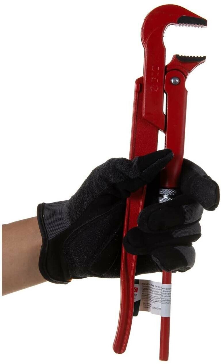 Профессиональное применение. Универсальный трубный газовый ключ (90°). Материал: хром-ванадиевая сталь, шлифованные губки.