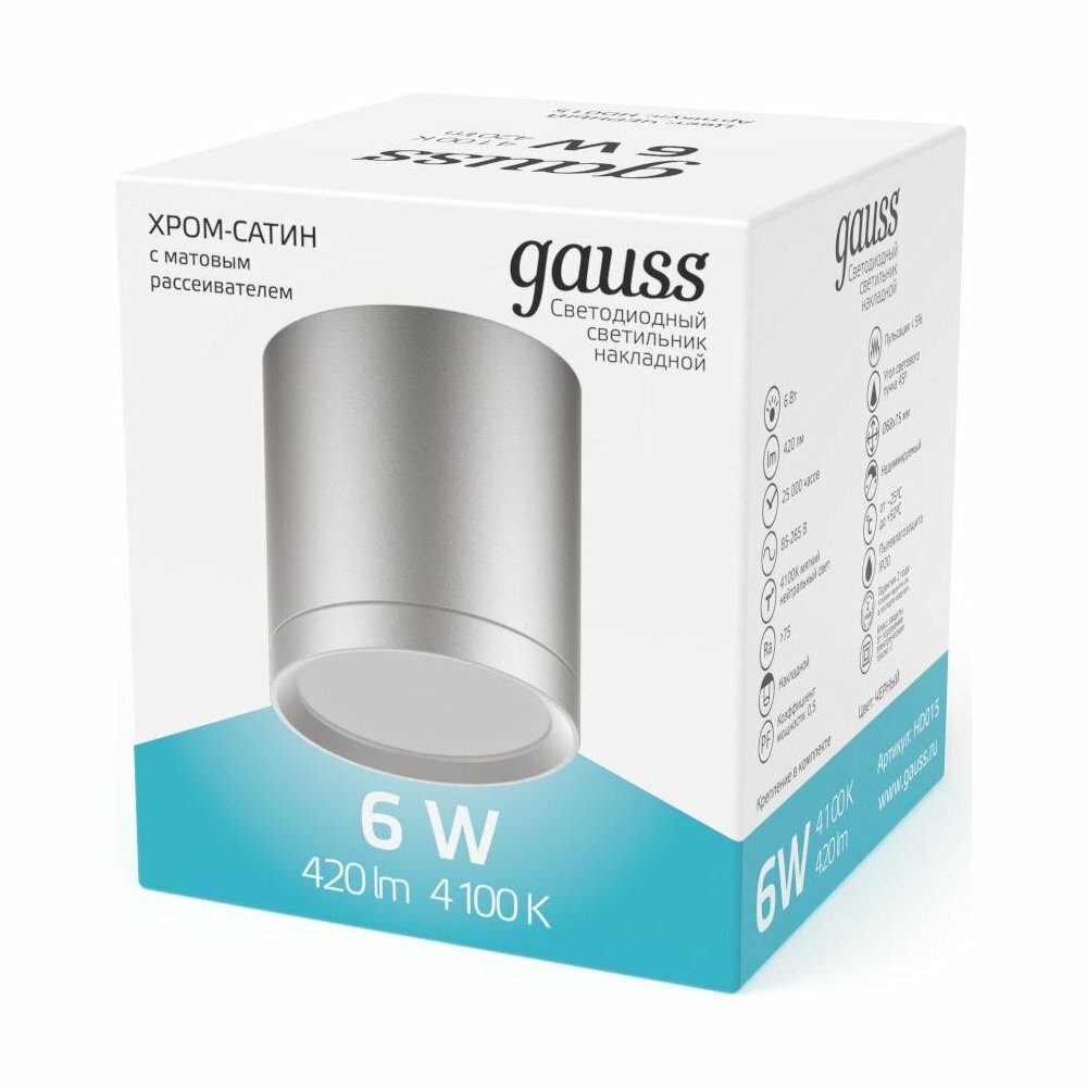 Потолочный светильник gauss Overhead HD019 кол-во светодиодов: 1 шт. 4100 К серебристый