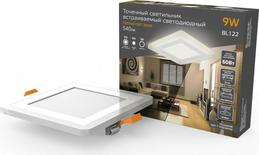 На сегодняшний день товар «Светильник gauss квадратный акрил 6+3w 3000k» можно купить с кешбеком в 1 магазине: Яндекс.Маркет