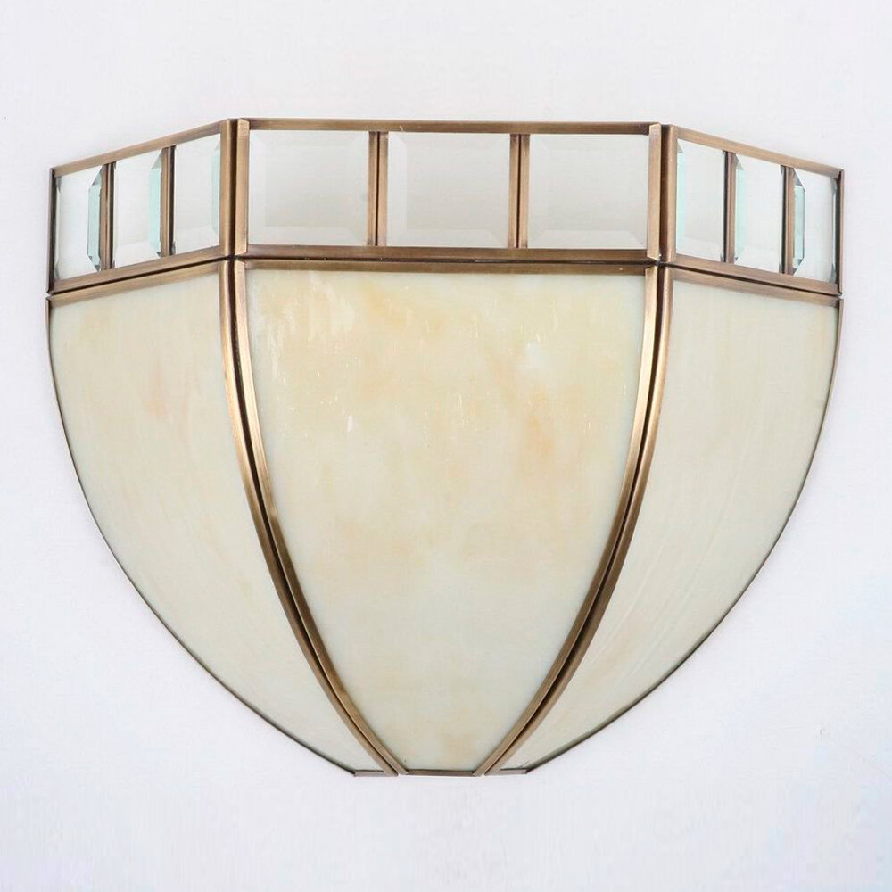 Настенный светильник Citilux Шербург-1 CL440311 в стиле Тиффани. Основание металлическое. Плафон ручной работы, из витражного стекла бежевого цвета с декоративными прозрачными элементами. В изделии 1 лампа Е27 максимальной мощностью для ламп накаливания 75Вт. Светодиодные лампы можно использовать более яркие. Высота 20см, ширина 26см, глубина 10,5см. Модель рассчитана на подключение к скрытой проводке и настенным выключателем. На корпусе выключателя нет.