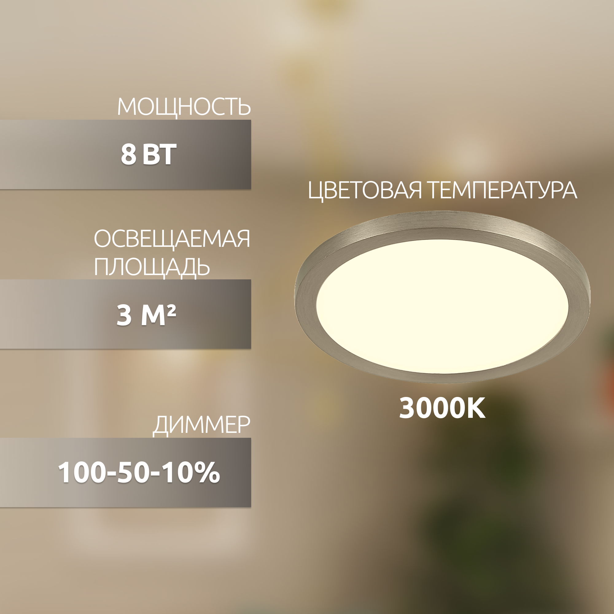 Ультратонкий встраиваемый светильник предназначен для натяжных потолков и подвесных потолочных систем, подходит для точечного и декоративного освещения. Конструкцией предусмотрена функция трехступенчатого управления уровнем мощности – для переключения режимов используется настенный клавишный выключатель. Размещенный за рассеивателем из оптического полимера светодиод гарантирует энергоэффективность и хороший потенциал экономии. Металлический корпус оснащен распорным механизмом для фиксации изделия.