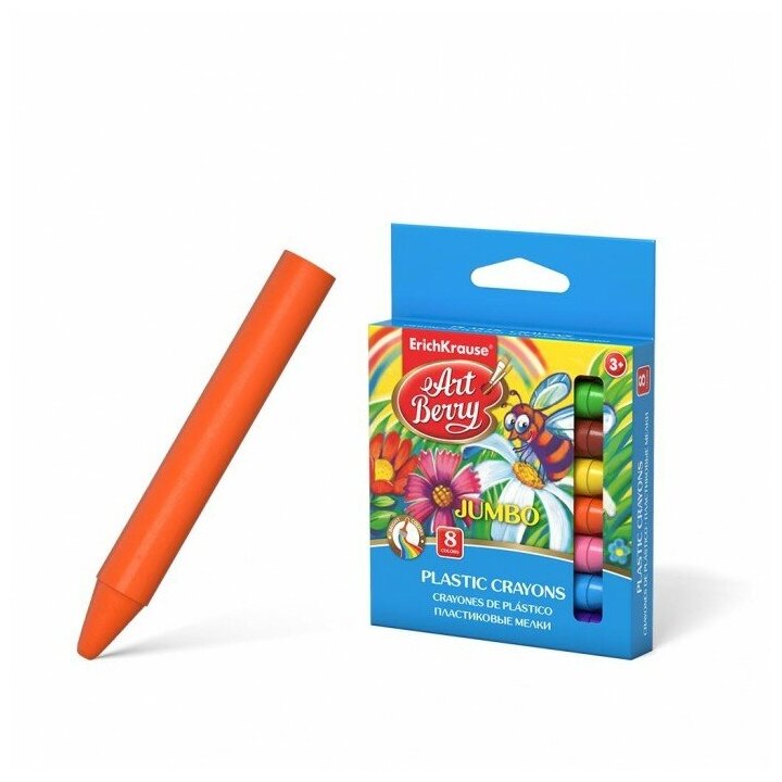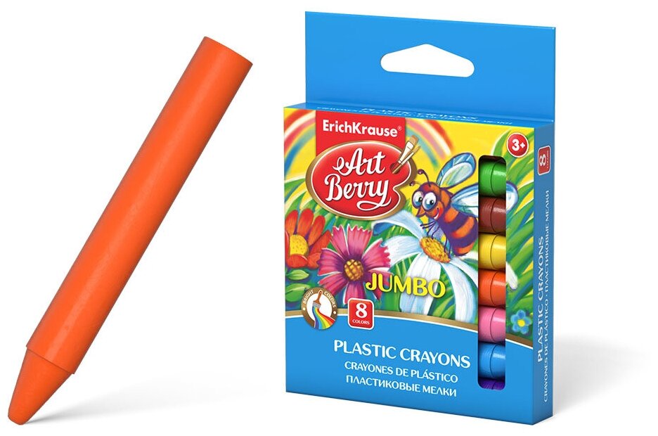 Канцелярские товары и наборы для творчества, является важной составляющей для раннего развитии детей. Artberry (Артбери) от Erich Krause (Эрих Краузе). Мелки пластиковые, толстые Jumbo 8 цветов. Пластиковые мелки для рисования предназначены для детей, которые уже научились рисовать восковыми мелками и толстыми карандашами. Ширина мелка 12 мм. Для детей от 3-х лет