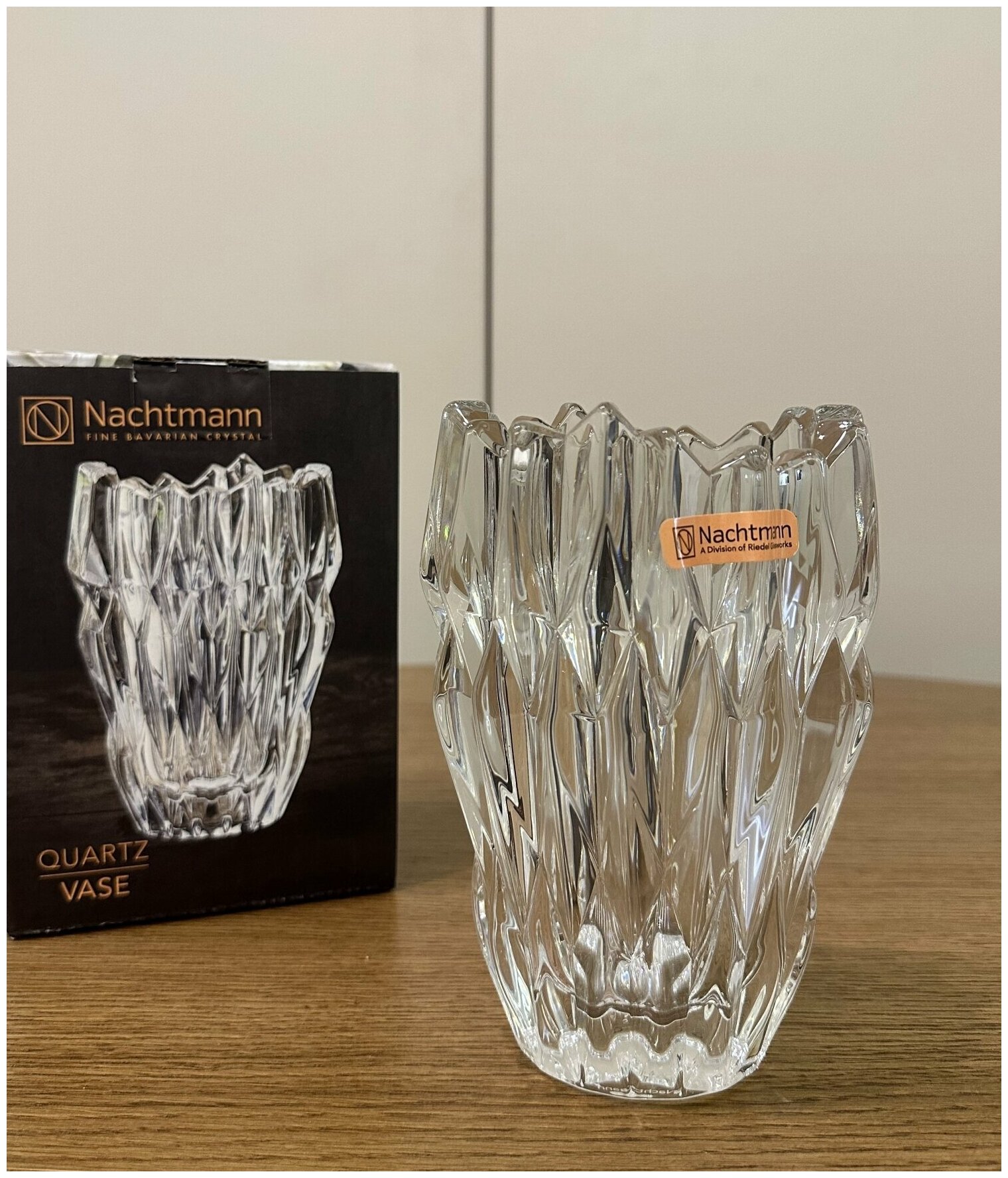 Ваза понравится ценителям изящных линий и будет прекрасным украшением Вашего дома. Цветы, будь то сложные композиции или скромные полевые ромашки, приобретают в такой вазе особое очарование. Коллекция Quartz появилась в результате конкурса на лучший дизайн, который компания Nachtmann провела совместно с Нью-Йоркским институтом Пратта. Победительница соревнования, успешный молодой дизайнер Кэтрин Меррик, преуспела в этом конкурсе и создала новую коллекцию хрустальных ваз Quartz. Источником вдохновения для нее стала сверкающая поверхность кристаллической структуры кварцевого песка.