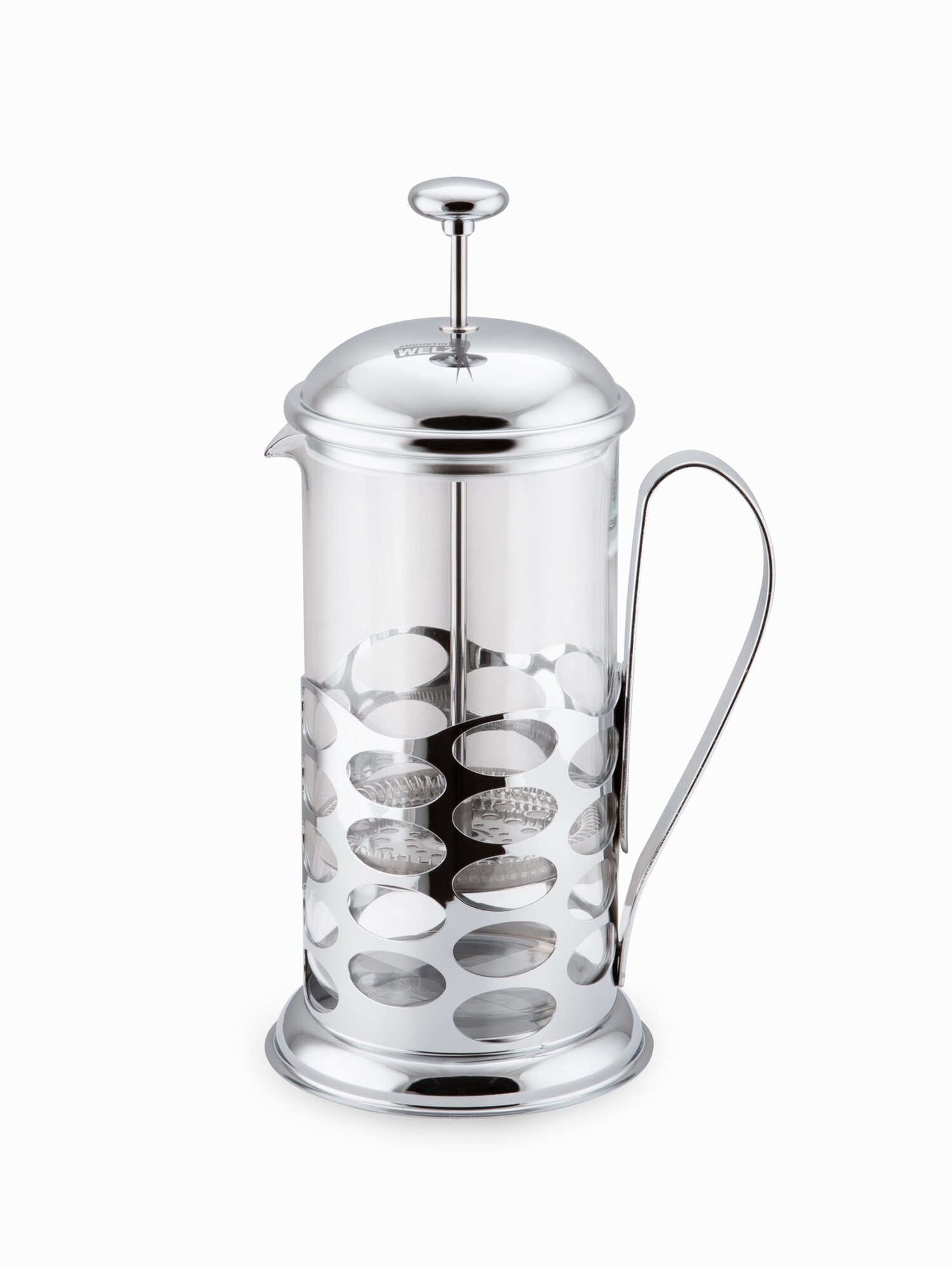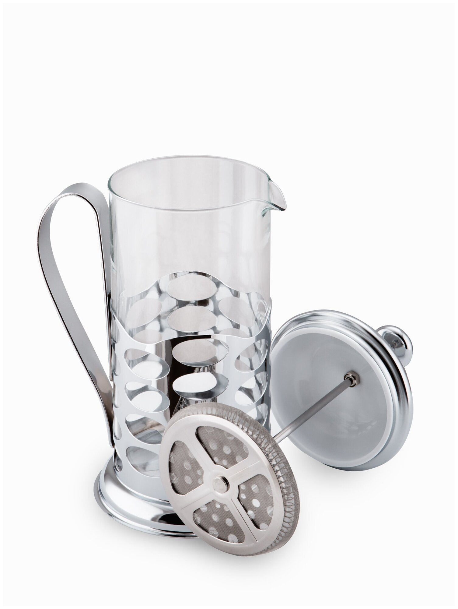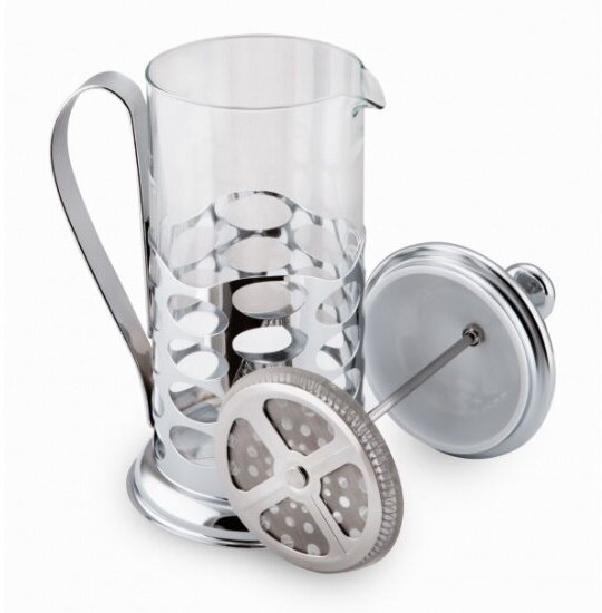 Френч-пресс Augustin Welz AW-2003 изготовлен из высококачественного закаленного стекла и нержавеющей стали с хромированным покрытием. Посуда из стекла позволяет максимально сохранить полезные свойства и вкусовые качества воды. Прозрачные стенки френч-пресса придают ему особую эстетику и помогают определить крепость завариваемого напитка. Крышка оснащена специальным толкателем, выполненным из металла. Он выполняет функцию фильтра, который задерживает чаинки. Перед употреблением напитка, поршень, с находящейся под ним заваркой, следует опустить вниз. Заварите крепкий, ароматный чай в представленной модели, и вы получите заряд бодрости, позитива и энергии на весь день! Классическая форма и универсальная цветовая гамма изделия позволят наслаждаться любимым напитком в атмосфере еще большей гармонии, эмоциональной наполненности и добавят нотку романтичности.