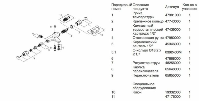 | Дополнительная информация | Для корректной работы устройства горячая вода должна быть подведена к левой стороне термостатического смесителя |