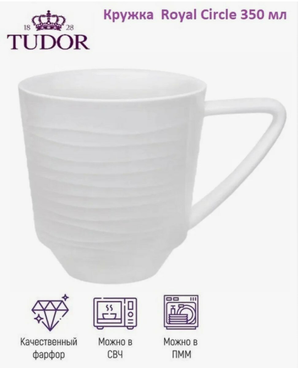Кружка 350 мл Royal Circle (TU2309) Куружка Tudor England из коллекции Royal Circle - это изящный английский фарфор в современном стиле. Привлекающий внимание рисунок в виде окружностей присутствует на всей коллекции. Настоящая классика и модный дизайн в стиле абстракционизма. Куружка белого цвета объемом 350 мл, высотой 9,5 см и диаметром 9 см. Процент белизны: 85 %. Универсальный, тонкий и прочный фарфор. Можно использовать в духовках при температуре до 280°C, микроволновых печах, посудомоечных машинах. Также имеет защиту от сколов. Материал фарфор объем 1170 куб. см Цвет белый Количество предметов в наборе 1 Высота кружки/чашки 9.5 см Возможность мытья в посудомоечной машине да Вид посуды кружка нанесение ПЦ Возможность использования в СВЧ-печи да Диаметр кружки/чашки 9 см Объем, мл 350
