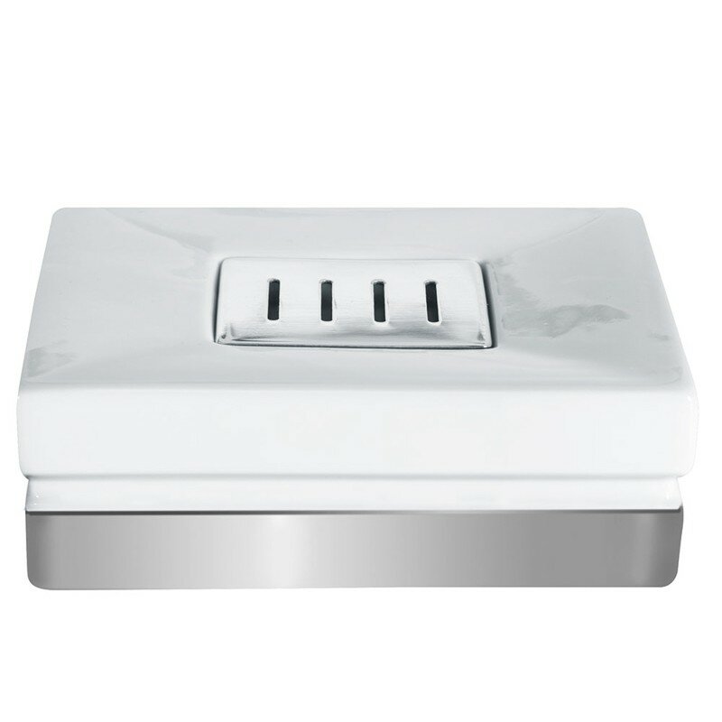 Мыльница Spirella Roma имеет прямоугольную форму и выполнена из долговечной и износостойкой керамики, не поддающейся образованию трещин и сколов. В центральной части емкости находятся продольные отверстия, в которые стекает влага. Благодаря чему мыло сохраняет первоначальную форму и не раскисает.Серебристое дно не скользит и не царапает плоскость, на которой размещается. Объемная конструкция изумительно впишется в любой интерьер и гармонично будет сочетаться с разными цветовыми гаммами. Вся коллекция Spirella Roma отличается стильным современным дизайном и прекрасно смотрится в сборе.