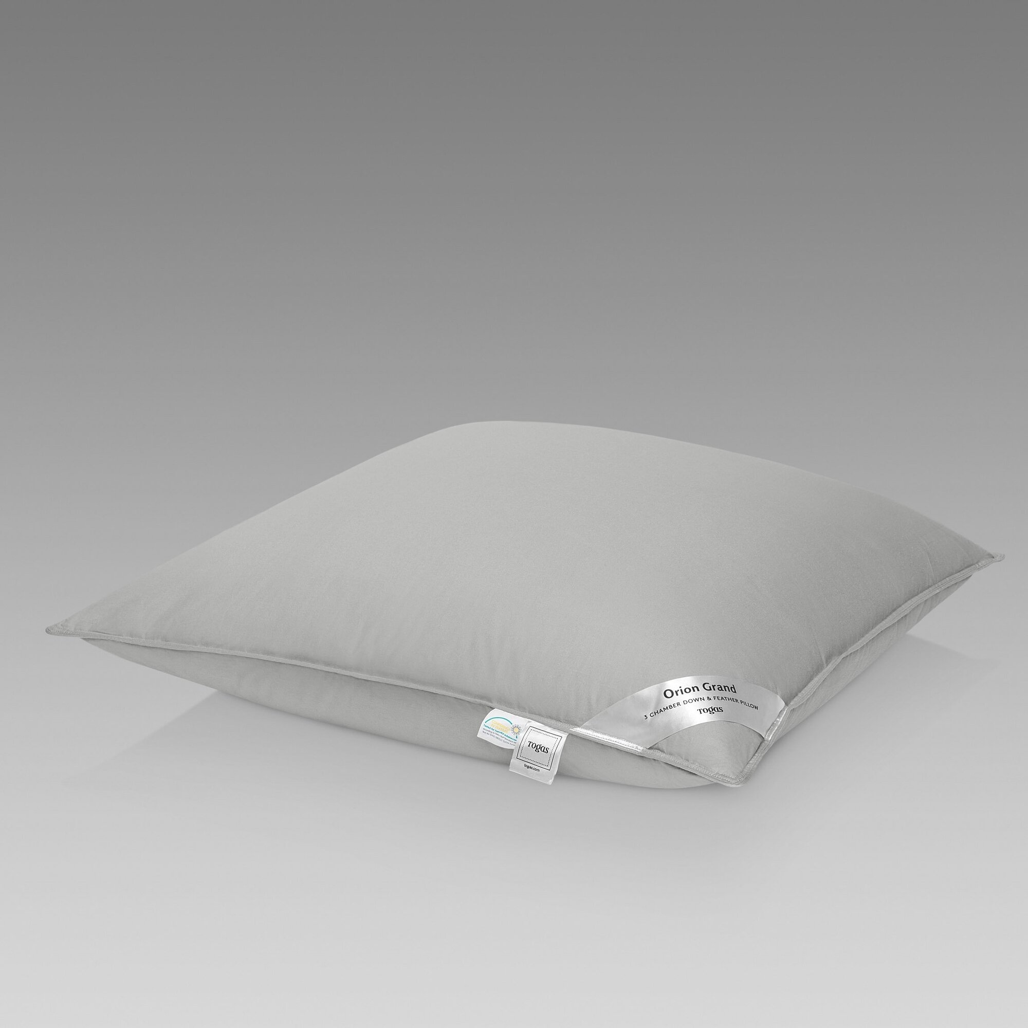 Подушка Togas Орион Гранд 70x70 см наполнена серым гусиным пухом и пером высшей категории. Главным преимуществом этой подушки является 3-х камерный чехол-наперник. В центральной камере - перо, обеспечивающее упругость и плотность подушки, а в наружных камерах - гусиный пух, придающий изделию особую мягкость и нежность. Натуральный пух является природным компонентом и отличается легкостью, высокой теплоизоляцией, способностью "дышать". Чехол подушки выполнен из 100% натурального хлопка повышенной плотности, что обеспечивает высокую гигиеничность и долговечность изделия.