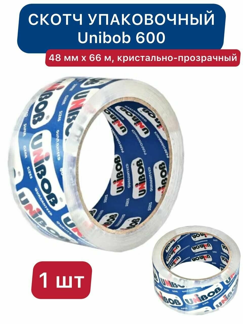 Скотч упаковочный Unibob 600 48 мм x 66 м кристально-прозрачный