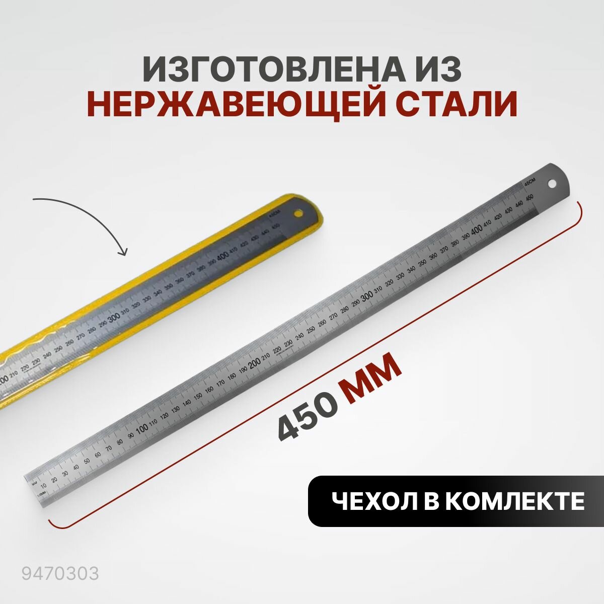 Название товара: Линейка измерительная металлическая метрическая.Описание товара:Представляем вашему вниманию линейку измерительную металлическую метрическую с длиной L = 450 мм, изготовленную из высококачественной нержавеющей стали. Этот товар станет незаменимым помощником для инженеров, проектировщиков, строителей, а также для тех, кто занимается моделированием и изготовлением различных предметов.Особенности товара: Точность измерений: Линейка имеет деления, соответствующие миллиметрам и сантиметрам, что обеспечивает высокую точность проводимых измерений.Материал изготовления: Линейка изготовлена из нержавеющей стали, благодаря чему она устойчива к коррозии, механическим воздействиям и способна выдерживать значительные нагрузки.Удобство использования: Благодаря своей компактности и прочности, линейка легко помещается в карман или сумку, и всегда под рукой при необходимости проведения измерений.Метрическая система измерений: Линейка поддерживает метрическую систему измерений, что делает ее универсальным инструментом для работы с различными проектами и объектами.Длина 450 миллиметров: Линейка имеет длину 450 миллиметров, что позволяет проводить измерения на больших поверхностях и объектах.В заключение, линейка измерительная металлическая метрическая является надежным и точным инструментом для проведения различных измерений.