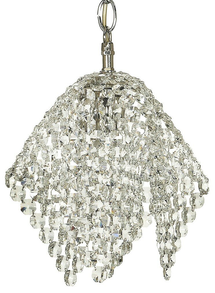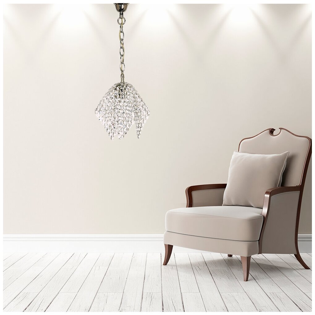 Подвес Roma E 1.3.P1 N из серии «Roma Nickel» от производителя Arti Lampadari (Италия). Дизайн-стиль классика. Отлично подойдет для такого типа помещений, как гостиная. Цвет товара серебристый. Используемые материалы: металл, хрусталь. С учетом технических характеристик мощности хватит для освещения 3.3 м2. Способ крепления: крюк. Направление плафонов вниз. Цоколь E27. Вид ламп: накаливания. Количество ламп 1 шт. Мощность одной лампы составляет 60 Вт. Общая мощность 60 Вт. Напряжение 220-240 Вольт. Уровень защищенности от влаги и пыли IP20. Расширенная гарантия на товар 2 года. Высота 600 мм. Диаметр 270 мм. Вес товара 1.5 кг. Комплектация: Подвес. Инструкция по сборке/использованию. Детали, необходимые для сборки товара.Товар упакован в картонную коробку. В случае доставки транспортными службами или маркетплейсом добавляются дополнительные элементы упаковки для защиты от повреждений при транспортировке - усиление картоном, внутренний наполнитель, стрейч-пленка.