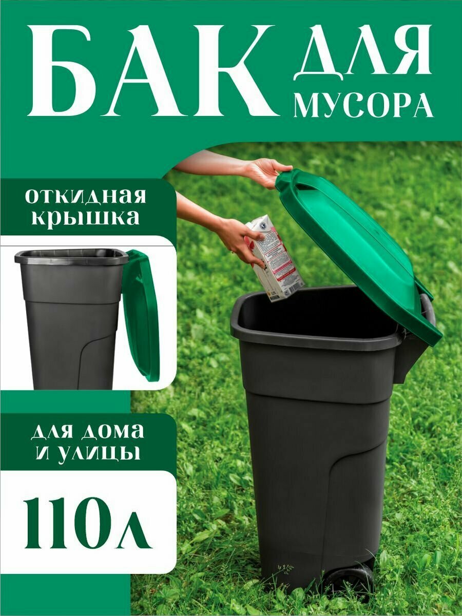 - Бак для мусора с крышкой на колесах пластмассовый (Plast Team) 110л обзор 27741