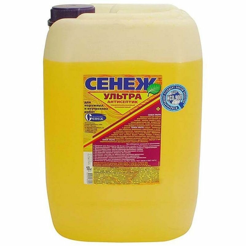 Антисептик "СЕНЕЖ УЛЬТРА" предназначен для защиты древесины от гниения, плесени, синевы и насекомых-древоточцев внутри помещений и на открытом воздухе при непосредственном воздействии атмосферных осадков, почвенной влаги, гигроскопическом и конденсационном увлажнении, контакте с грунтом самостоятельно или в качестве биозащитной грунтовки под ЛКМ.