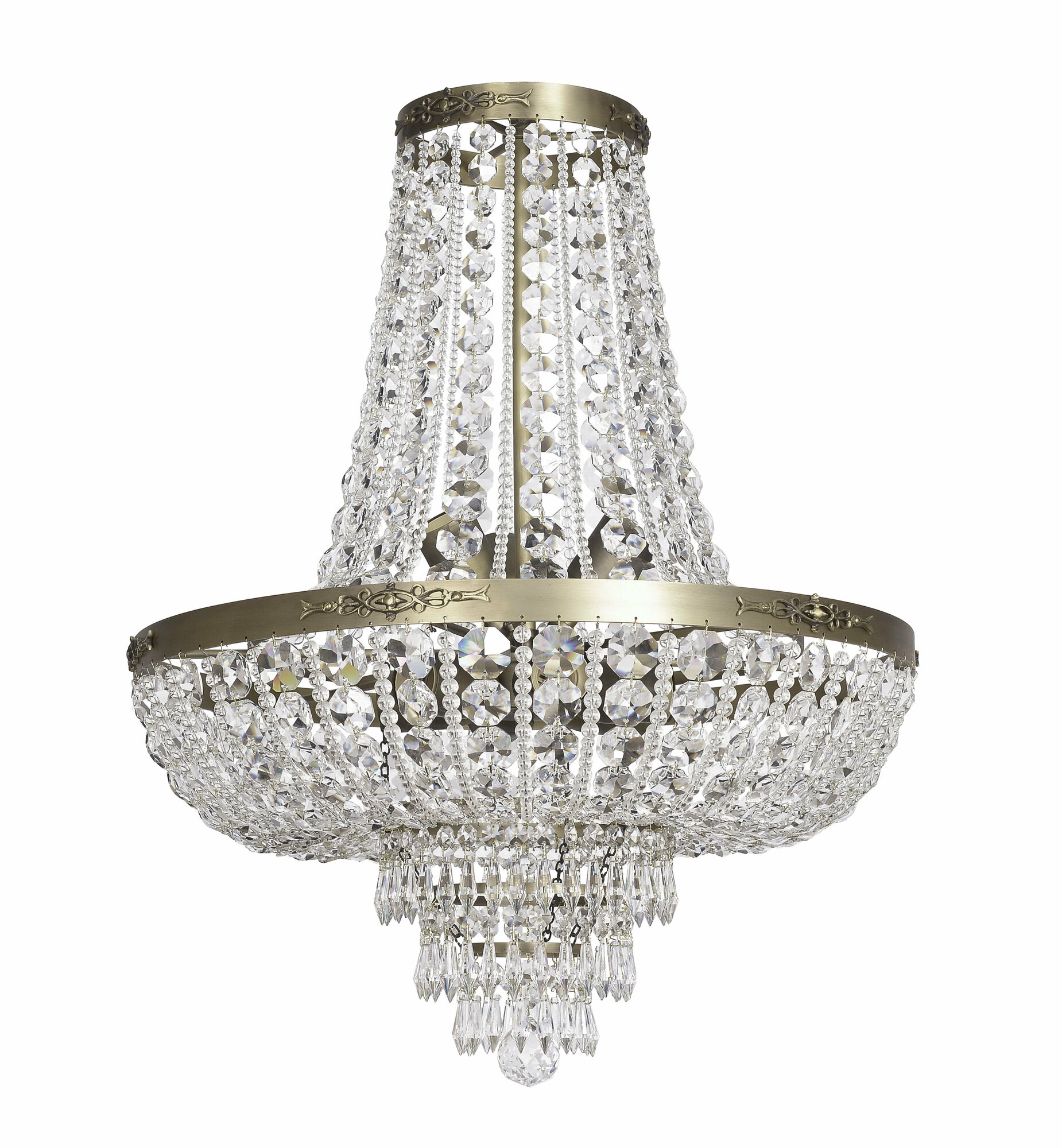 Хрустальная люстра в классическом стиле на металлическом каркасе цвета антик.