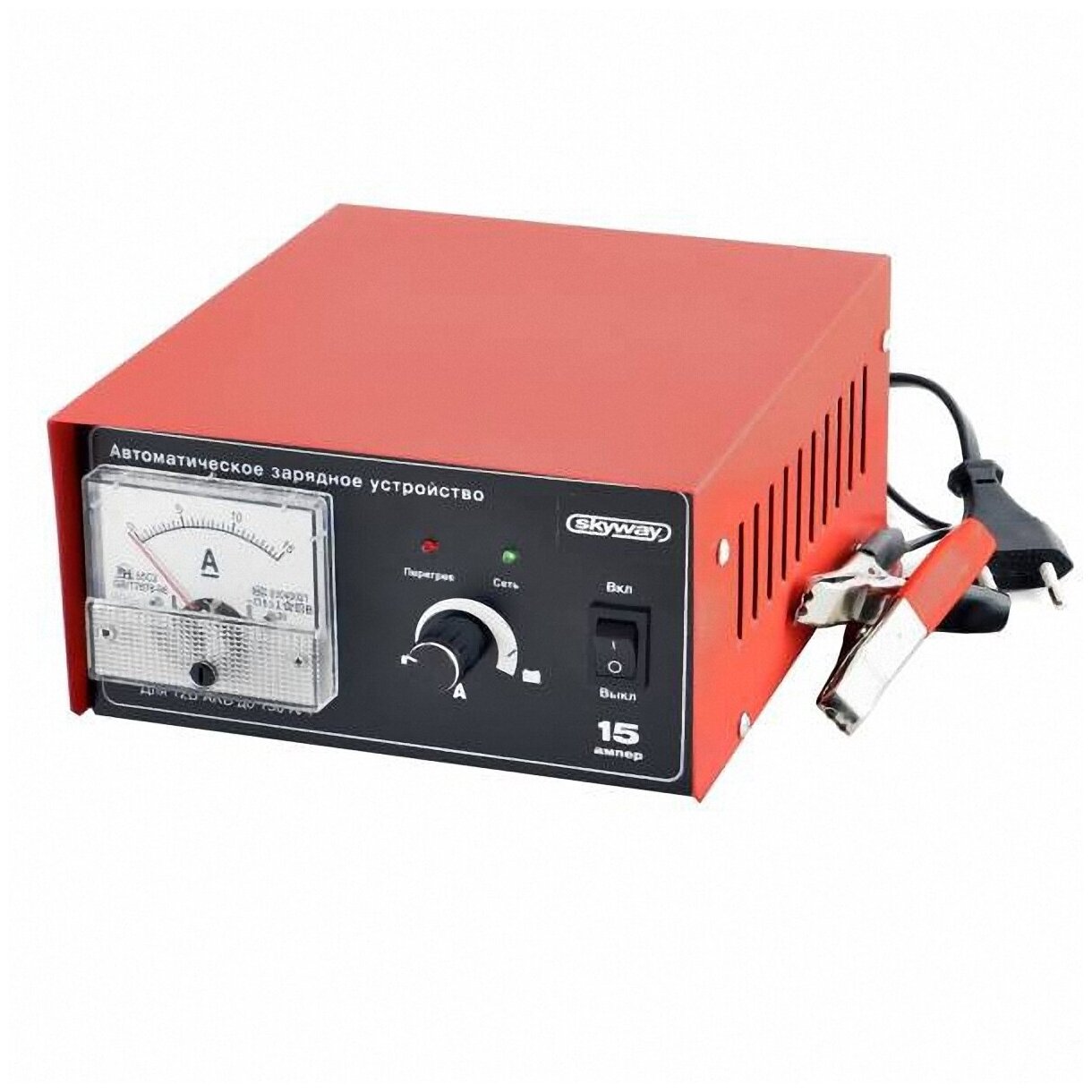 Импульсное автоматическое зарядно-предпусковое устройство для всех типов аккумуляторных батарей 15А. _x000D_ Особенности: _x000D_ Оптимальное сочетание напряжения и тока._x000D_ Зарядка необслуживаемых АКБ._x000D_ Зарядка без отключения и снятия АКБ с автомобиля._x000D_ Использование в качестве источника питания._x000D_ Защита неправильного подключения._x000D_ Защита от перегрузок и короткого замыкания._x000D_ Защита от перегрева. Для аккумуляторных батарей 12 В._x000D_ Емкость аккумуляторной батареи - до 150 А/ч._x000D_ Напряжение питания сети - 180-240В/50 Гц._x000D_ Потребляемый ток - 1.7 А._x000D_ Потребляемая мощность - 140 ВТ._x000D_ Максимальное выходное напряжение - 14,8 В._x000D_ Ток зарядки - 0,4-15 А.