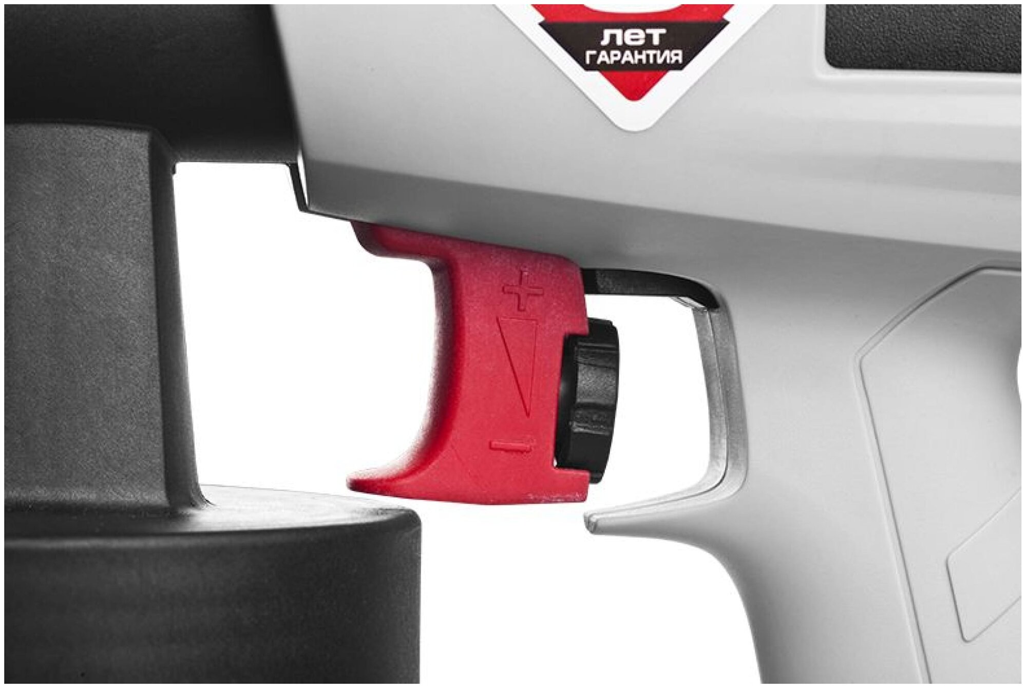 Краскопульт – универсальный, надежный и простой в использовании инструмент для нанесения большинства лакокрасочных материалов. С помощью краскопульта просто и быстро окрасить поверхность, обработать антисептиком, покрыть лаком, нанести узоры. Исключение затрат на валики и кисти, уменьшение расхода наносимого материала, отсутствие разводов и потеков, существенное ускорение работы – главные преимущества использования краскопультов ЗУБР.