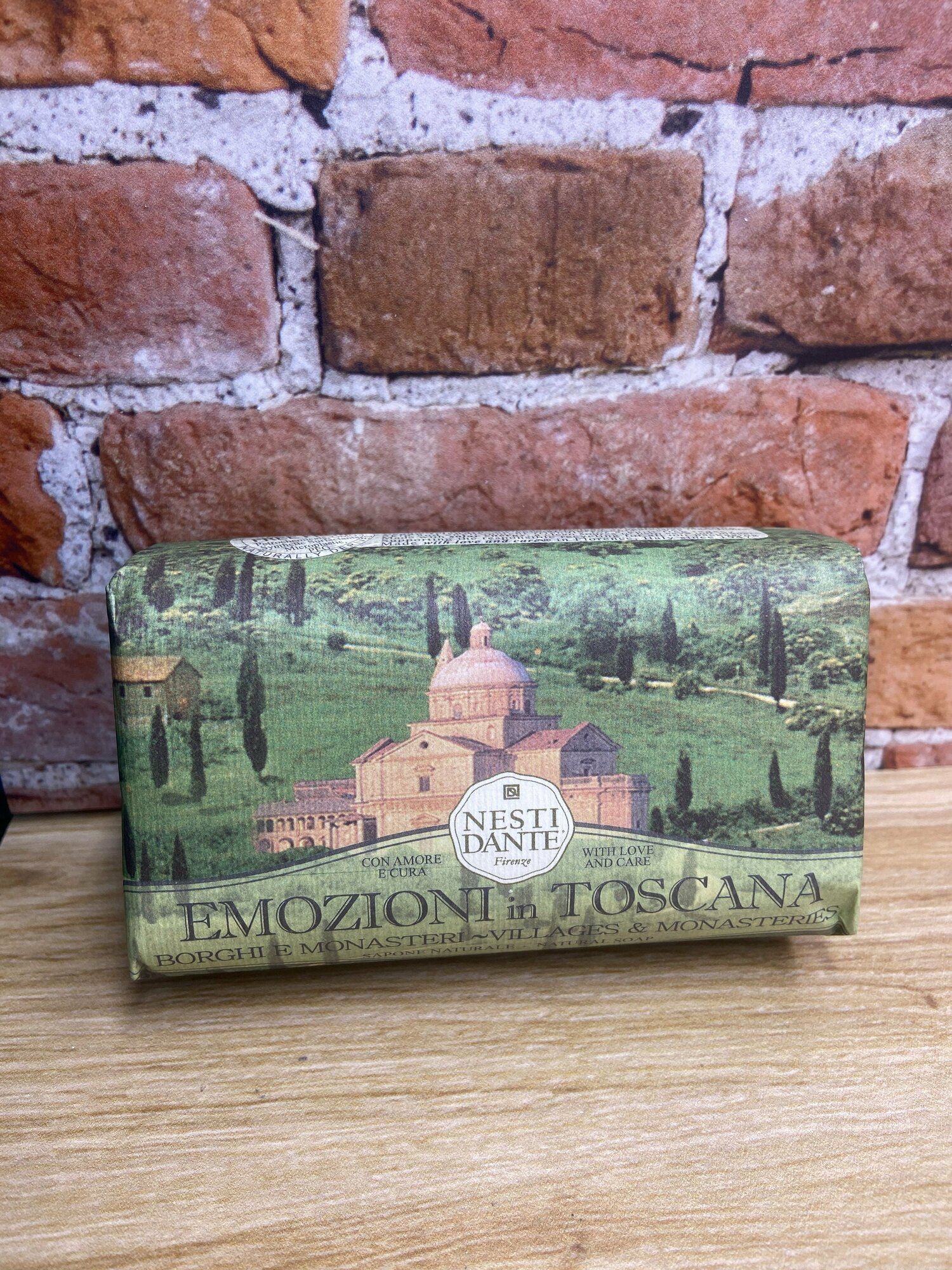 Великолепное растительное мыло премиум-класса Nesti Dante "Emozioni In Toscana. Монастыри и предместья" изготовлено по старинным рецептам и по традиционной котловой технологии, в составе мыла только натуральные оливковое и пальмовое масло высочайшего качества, для ароматизации использованы органические эфирные масла. Ежедневный ритуал красоты, любви и заботы не только для тела, но и для душиРастительное кусковое мыло ручной работы. Изысканная флорентийская бумага, в которую завернуто мыло, расписана акварелью, на каждом кусочке мыла выгравирована надпись "With Love And Care (С любовью и заботой)"