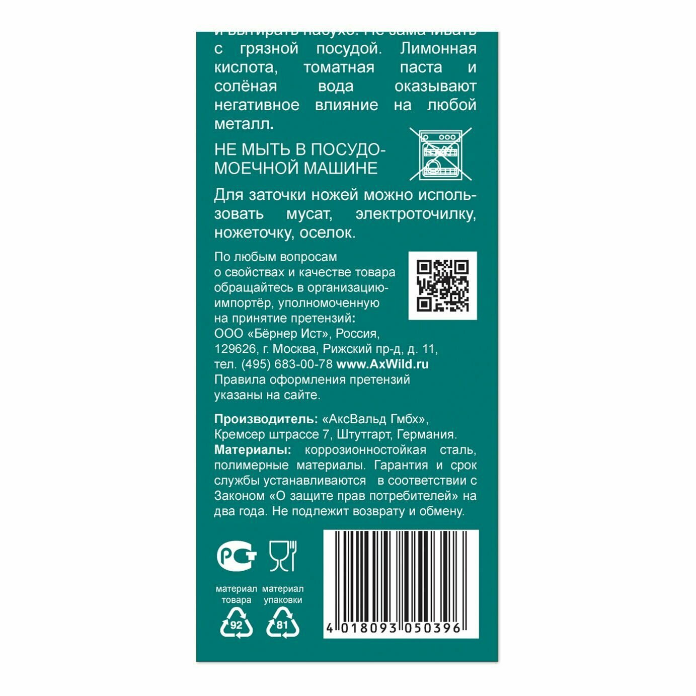 Ножи изготовлены из прокатной коррозионностойкой стали. Твёрдость HRC 53. Ручки ножей сделаны из ABS-пластика. Для заточки ножей можно использовать мусат, электроточилку, ножеточку, оселок.