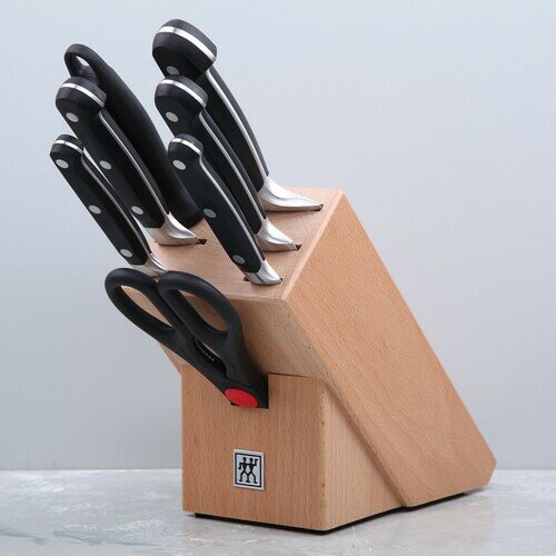 | Состав набора | Нож для овощей 10 см; Нож для нарезки 20 см; Нож поварской 20 см; Нож универсальный 13 см; Нож для хлеба 20 см; Точилка (Мусат) 23 см; Ножницы хозяйственные 20 см; Подставка для ножей 23x10x19,5 см. |