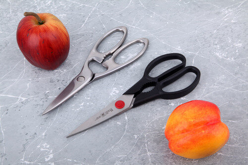 Кухонные ножницы Twin "Select", изготовленные из высококачественной нержавеющей стали с микро-серрейторной заточкой, займут достойное место среди аксессуаров на вашей кухне. Они предназначены для нарезки свежей зелени или птицы и вскрытия прочных картонных и полимерных упаковок и заканчивая разделкой рыбы и птицы (срезание плавников, разрезание тушки цыпленка на порционные части). Между ручками ножниц имеются два отверстия, которые выполняют роль открывалок для бутылок и винтовых крышек.