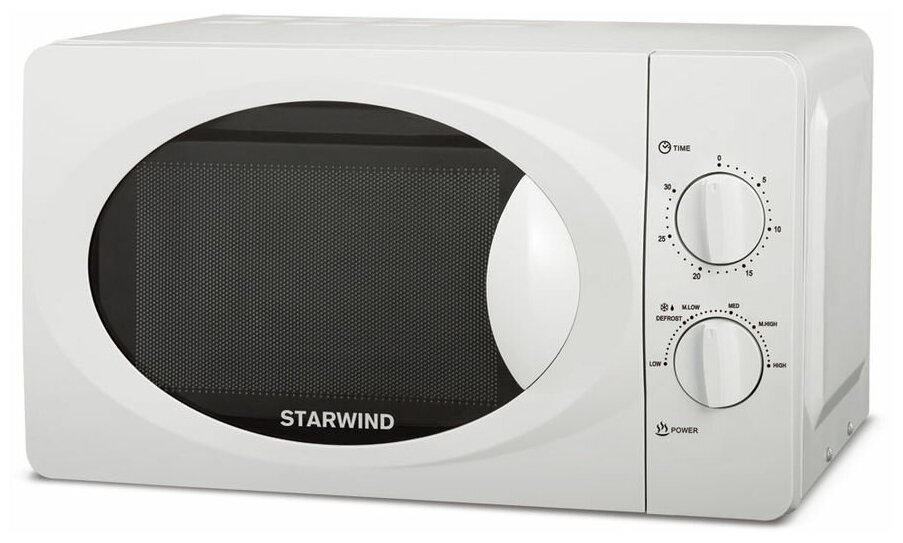 Компактная микроволновая печь STARWIND – отличный выбор для хозяйки, ценящей свое время и надежную технику. Модель выполнена в современном привлекательном дизайне, в белом цвете и может стать достойным украшением кухонного пространства. Удобная ручка открывания дверцы и регуляторы режимов разогрева и подогрева повышают комфорт эксплуатации кухонным оборудованием. С помощью регуляторов легко выбирается нужный режим для того или иного блюда.