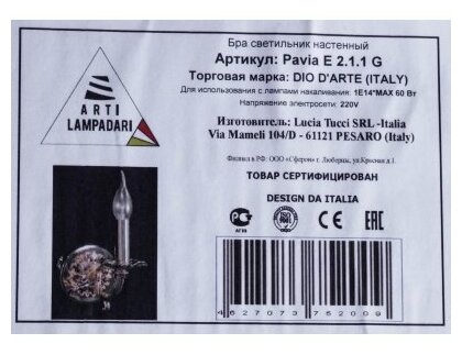 Сервис сравнения цен СкидкаГИД предлагает сравнить цены на товар «Бра Arti Lampadari Pavia E 2.1.1 G»