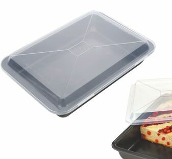 Лист для выпечки глубокий с пластмассовой крышкой DELICIA 33 x 23 см, Снабжены высокостойким антипригарным покрытием, которое препятствует пригоранию.