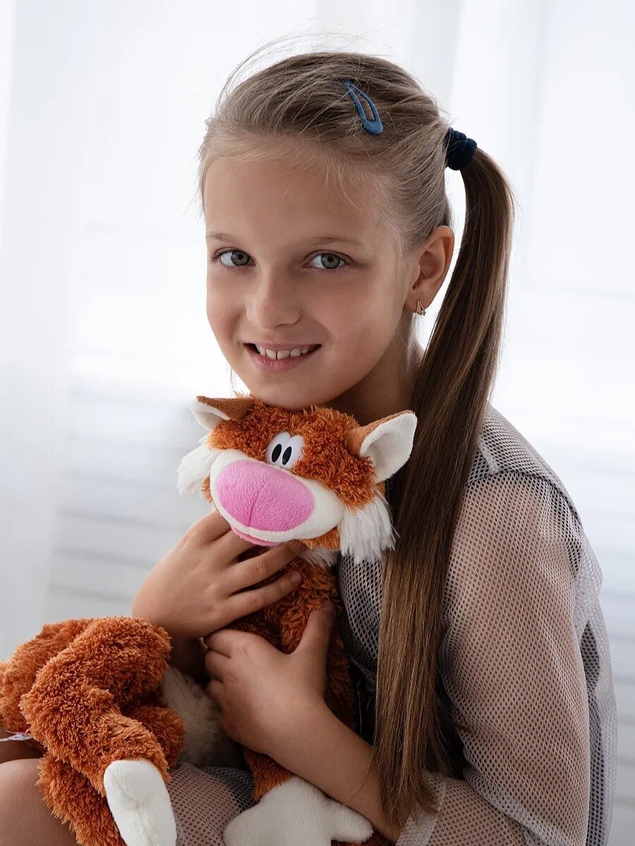 Полосатый серый "Кот Бекон" от бренда Fancy - это забавная мягкая игрушка, которая понравится и ребенку и взрослому! У этого симпатичного мягкого кота настоящий кошачий окрас: белый в серую полоску, и чудесный длинный хвост. Этот забавный котяра так похож на настоящего дворового кота. Приручите его, и он станет преданным обитателем вашего дома, оживляя обстановку своей веселой мордашкой с большим розовым носом. Кот Бекон быстро станет любимцем вашего ребенка, ведь с ним можно играть и просто тискать, получая от этого положительные эмоции. Сделано в Беларуси, Фэнси.