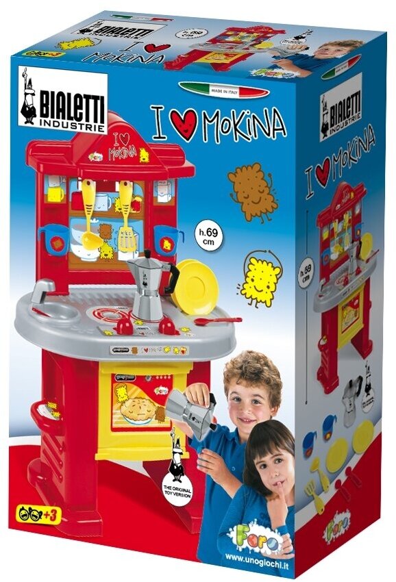 Игровой набор ABtoys Кухня 1535. Игровая кухня для настоящего шеф-повара высотой 69 см выполнена в красном и желтом цветах, так что эта игрушка подойдет как для девочек, так и для мальчиков. На серой столешнице располагается раковина и плита с конфорками, а справа место для чистых тарелок. Ниже располагается духовка с дисплеем и цветными наклейками (регулировка температуры, режим выпечки и т. д.).