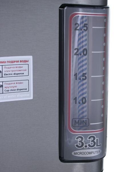 Согреть быстро воду на несколько чашечек чая вы сможете со стильным термопотом . Выполненный из нержавеющей стали, данный термопот смотрится очень изысканно и богато, поэтому он великолепно впишется даже в самую современную кухню. Управлять этим устройством одно удовольствие! Понятная панель управления располагается на верхней части корпуса. При этом ручка позволит вам с легкостью перенести прибор в любое место, а индикатор уровня воды всегда вам подскажет, сколько воды находится в термопоте. Имея большой объем 3,3 литра, вы одновременно согреете много воды. Именно поэтому данный термопот особенно актуален в больших семьях или в офисах.