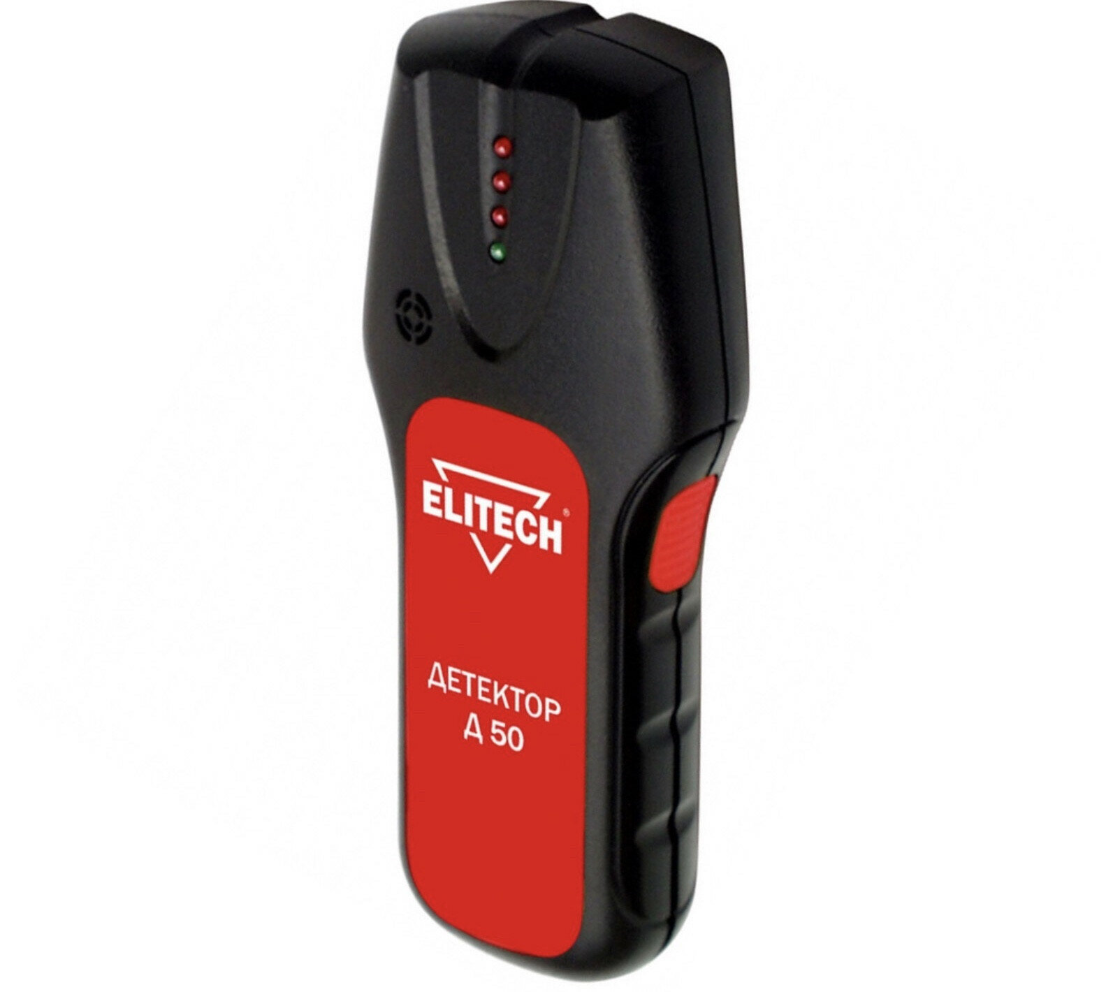 Детектор Elitech служит для обнаружения цветных и черных металлов, деревянных поверхностей, а также проводов под напряжением. Для более комфортной работы он оснащен как световой, так и звуковой индикацией. Устройство работает от батареи типа Крона, напряжением 9 В. Размеры модели - 145х65х25 мм.