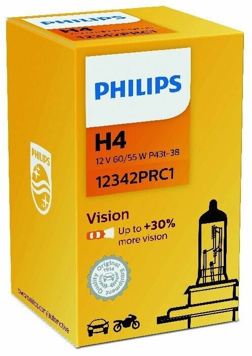 Philips 12342PRC1 Philips Vision –Лампы Philips Vision дают на 30% больше света по сравнению со стандартными лампами, они создают превосходный