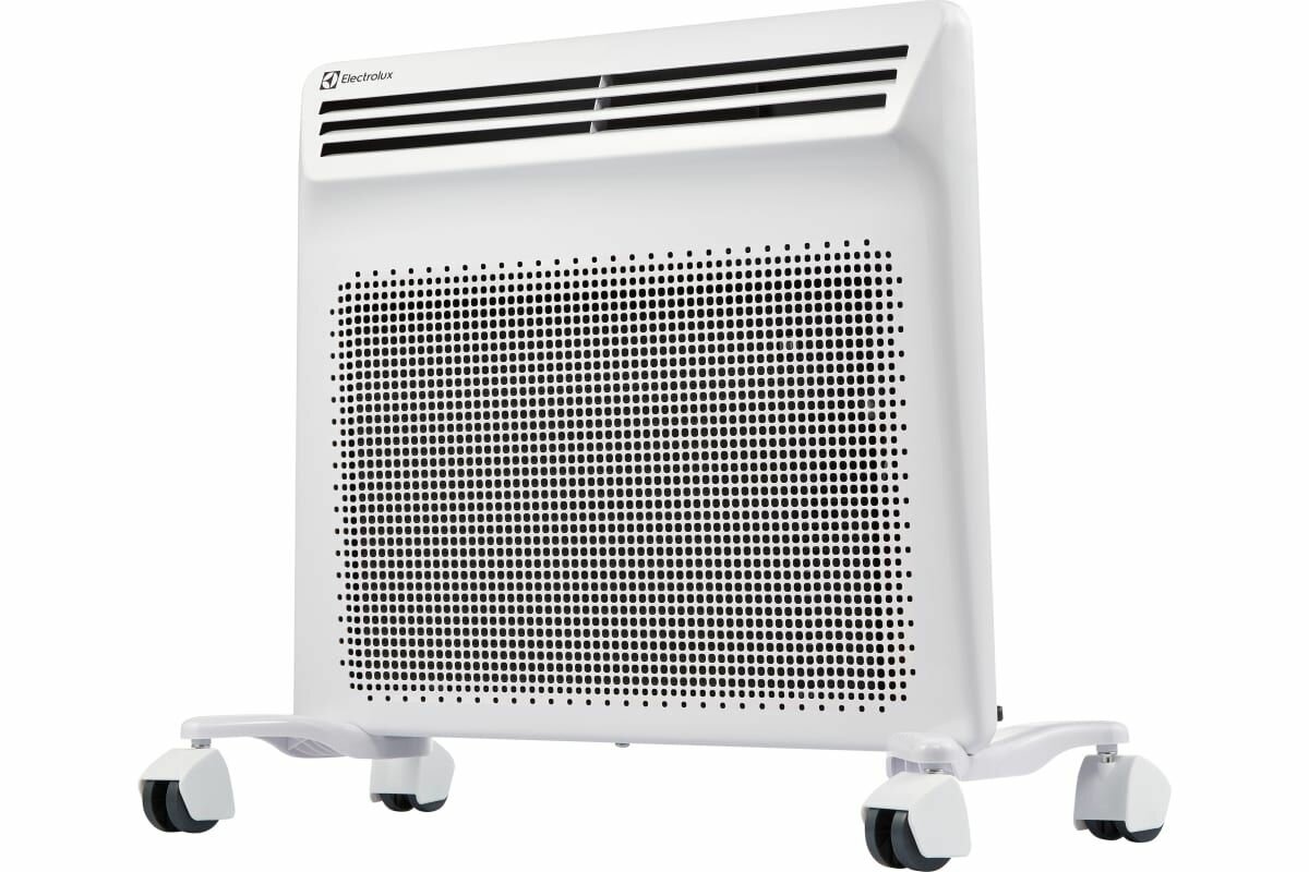 Electrolux EIH/AG2-1000 E – отличный способ сделать дом теплым. Обогреватель от именитого производителя Electrolux имеет отличные отзывы. При этом на фото в интернете можно убедиться в его удобстве для помещения. Конвектор напольный, но имеет колесики для передвижения. Корпус Electrolux EIH/AG2-1000 защищен от влаги. Обогреватель имеет регулятор температур, что удобно при управлении. Electrolux EIH/AG2-1000 – удачная модель, оснащена термостатом и самостоятельно отключается при перегреве.