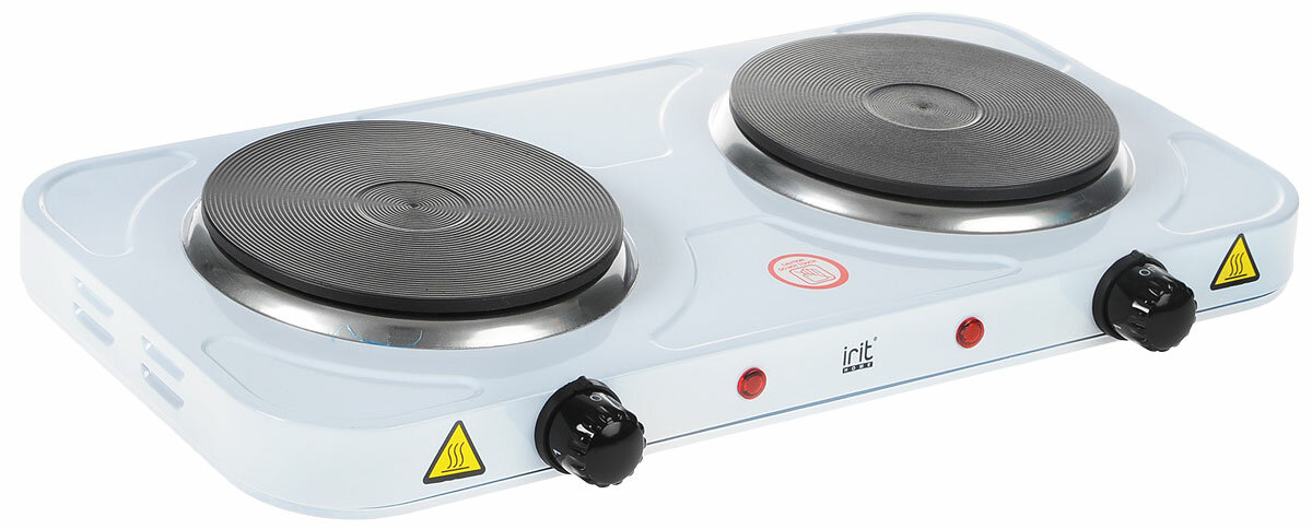 Настольная плита электрическая IRIT предназначена для приготовления и разогрева пищи в условиях отсутствия газоснабжения. Работая от обычной электрической сети, плита быстро прогреет необходимое количество пищи. Благдаря блинообразным чугунным конфоркам, посуда нагревается равномерно. Эмалевое покрытие легко чистится. Поворотные регуляторы температуры нагрева позволят легко подобрать необходимый режим.