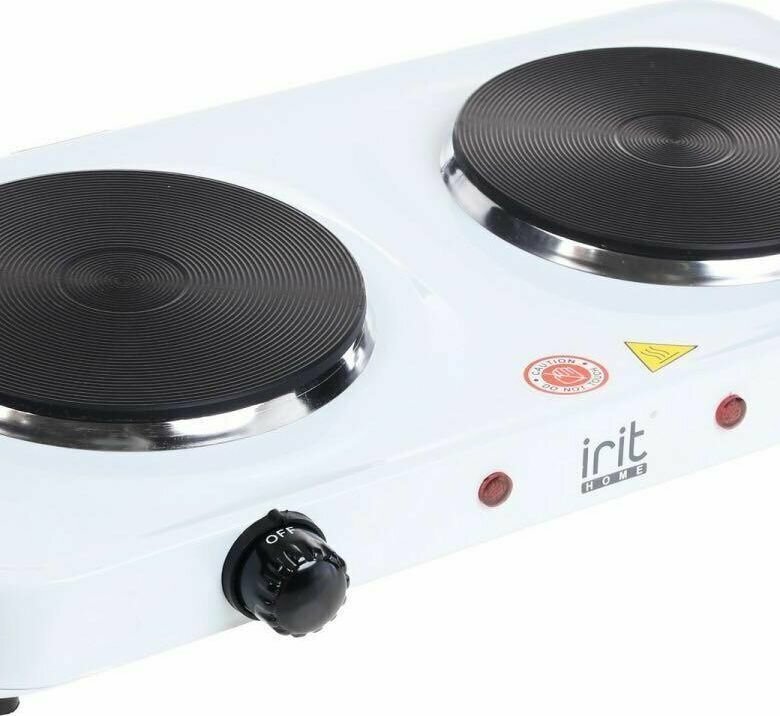 Компактная мощная электроплитка Irit на две конфорки - отличное решение для дач, неотремонтированных квартир и прочих условий, близких к походным. Комфорт использования обеспечивается плавной регулировкой температуры и быстротой нагрева. Диаметр конфорок 155 мм каждая - для различной металлической посуды, нагревательный элемент из чугуна - надежен и долговечен. Пять режимов нагрева облегчают контроль над ситуацией.