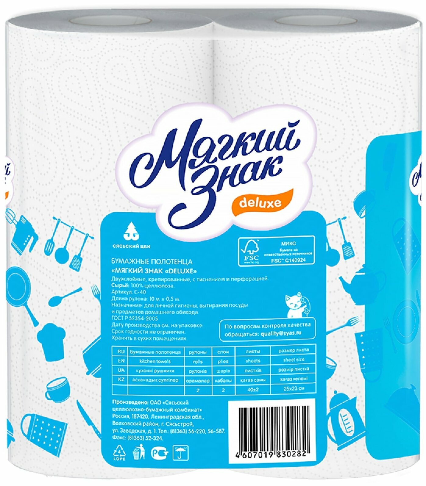 Полотенца бумажные Мягкий Знак Deluxe 2 слоя 2 рулона
