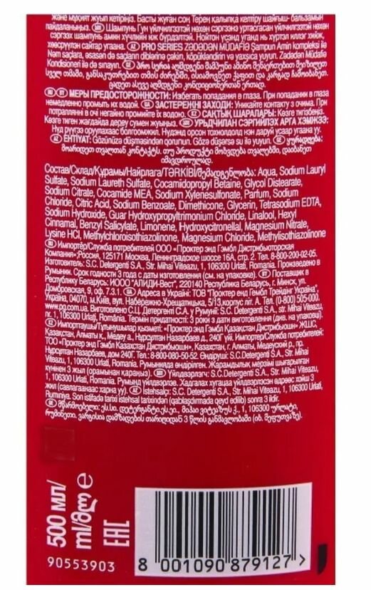 | Способ применения | Как использовать: Вмассируйте во влажные волосы, насладитесь пеной и тщательно смойте. После мытья головы используйте бальзам-ополаскиватель Pro Series "Активное увлажнение". |