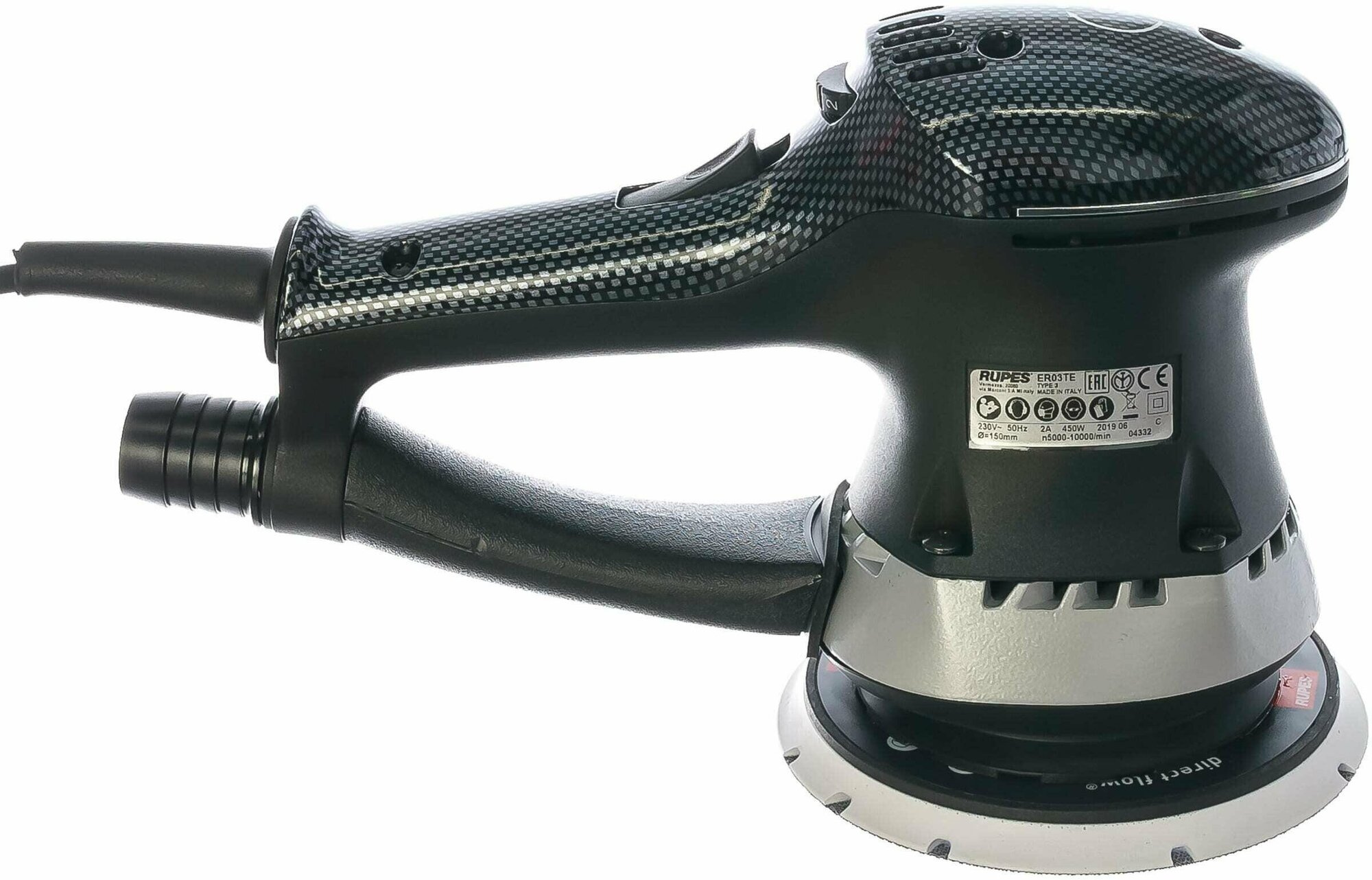 Машинка шлифовальная эксцентриковая ER 03TE Rupes. Шлифовальная электрическая эксцентриковая машинка с автономным пылеотводом, вращательно-орбитальная, используется для предварительной и финишной тонкой шлифовки свежеокрашенных и старых лакокрасочных покрытий кузова автомобиля. Инструмент оснащён подложкой с 15 отверстиями, для которых подходят полировальные круги с 6+1, 8+1 и 15 отверстиями, в том числе сетчатые круги. Крепятся диски к подошве при помощи липучки -Velcro.