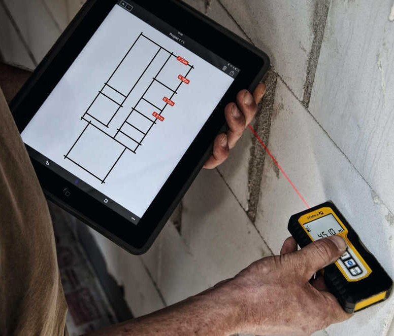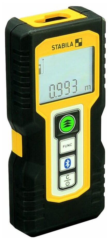 STABILA – компактный и простой в использовании лазерный дальномер для проведения замеров на расстоянии от 0,2 до 50 м. Модель имеет встроенный модуль Bluetooth Smart 4.0. Благодаря этому, пользователь может передавать полученные данные измерений на планшет или смартфон. Для переноса результатов измерений на фотографии или чертежи объекта используется бесплатное приложение для устройств на платформах Android и iOS STABILA Measures. Вес модели – 0,2 кг.