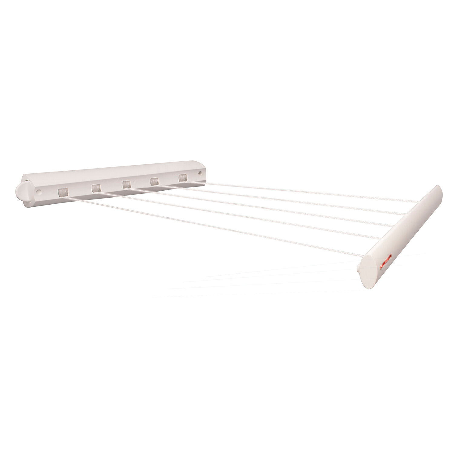 Сушилка для белья Rollfix – оригинальное и эргономичное устройство для настенного монтажа в любом помещении либо на открытом воздухе. Отличается стильным дизайном, идеально отвечающим требованиям современных интерьеров, и повышенной прочностью всех конструкционных элементов. Торцевая выдвижная планка, на которой закреплены 5 бельевых веревок из долговечного и водостойкого полиэфирного волокна, может быть зафиксирована на любом расстоянии от базового блока в пределах 4,2 метра. Корпус сушилки изготовлен из экологически безопасного высокопрочного пластика и сохраняет свои эстетические свойства на протяжении всего срока использования.