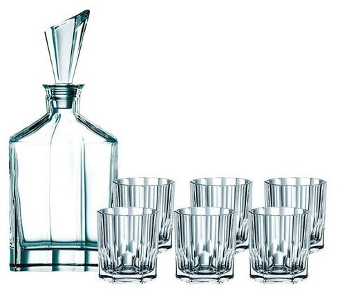 Набор для виски Nachtmann Aspen, 7 предметов: Декантер, 750 мл + 6 бокалов, 324 мл Серия Aspen от одного из лучших в мире производителей аксессуаров для сервировки – компании Nachtmann – воплощает собой идеальное сочетание настоящего немецкого качества и традиционной европейской элегантности. Наборы из высоких и низких стаканов и стильных декантеров выполнены из бессвинцового хрусталя, что не только свидетельствует о высочайшем качестве изделий, но и является бесспорным подтверждением их экологичности. Чистые линии и сдержанная элегантность серии Aspen позволяют использовать его и для изысканной сервировки праздничного стола и в качестве стильного и функционального аксессуара кабинета или гостиной. В набор входит: Декантер - объем 750 л, диаметр 12.2 см, высота 20.8 см; 6 бокалов - объем 324 мл, диаметр 8.8 см, высота 9.8 см. Особенности: Хрустальное стекло высочайшего качества без добавления свинца Высокая прочность и устойчивость к царапинам Отсутствие швов Минимальная толщина стенок Изделия пригодны для мытья в посудомоечной машине Изготовлено в Германии