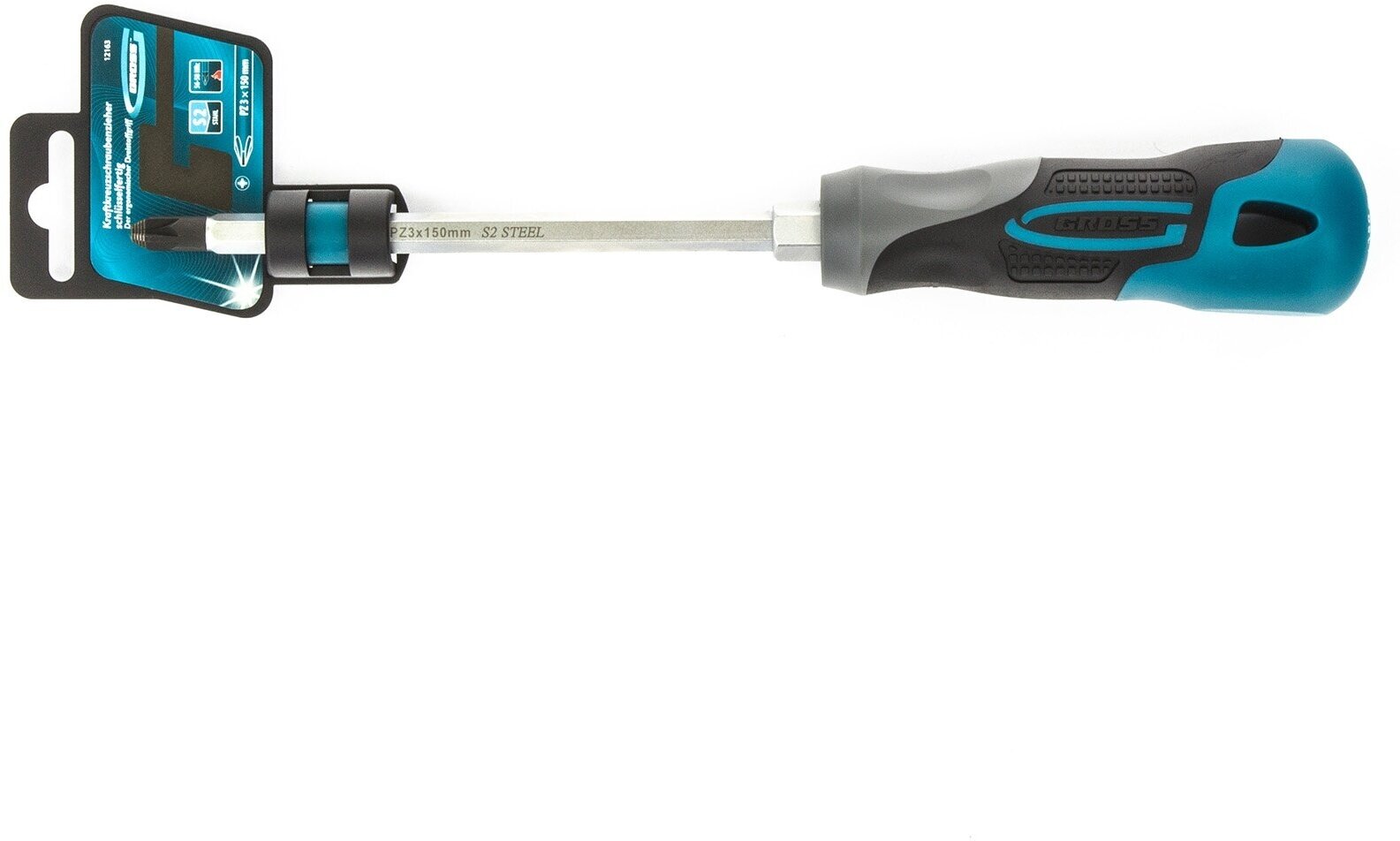 Отвертка PZ3x150 мм GROSS 12163 имеет прочный стержень и жало, изготовленное из стали S2 высокого качества. Применяется для работ с резьбовыми соединениями. Трехкомпонентная ручка способствует надежному захвату инструмента и комфорту в работе.