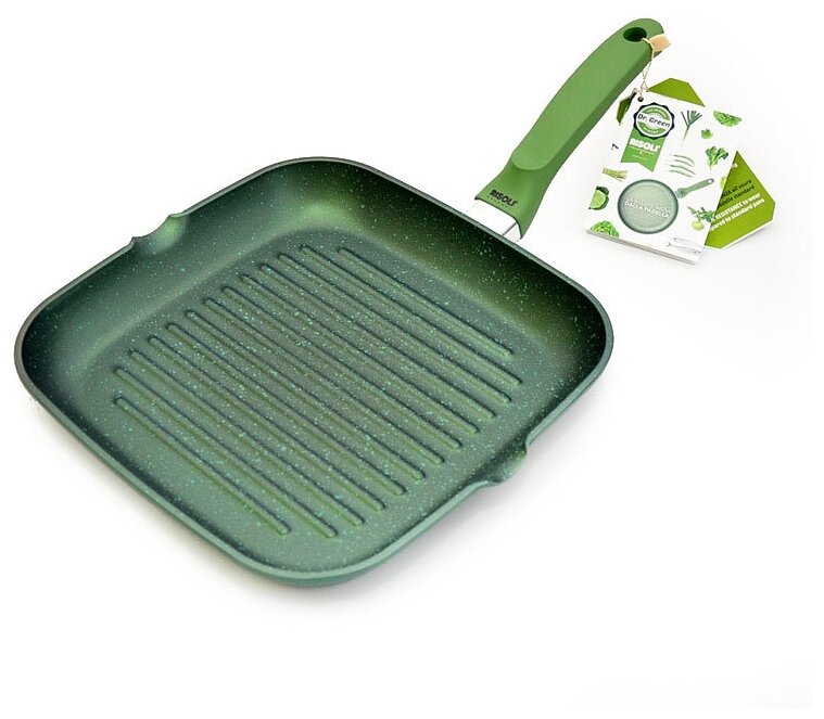 Гриль антипригарный RISOLI Dr.Green 26х26 мм, литой алюминий, толщина 6 мм, с мягкой несъемной ручкой.