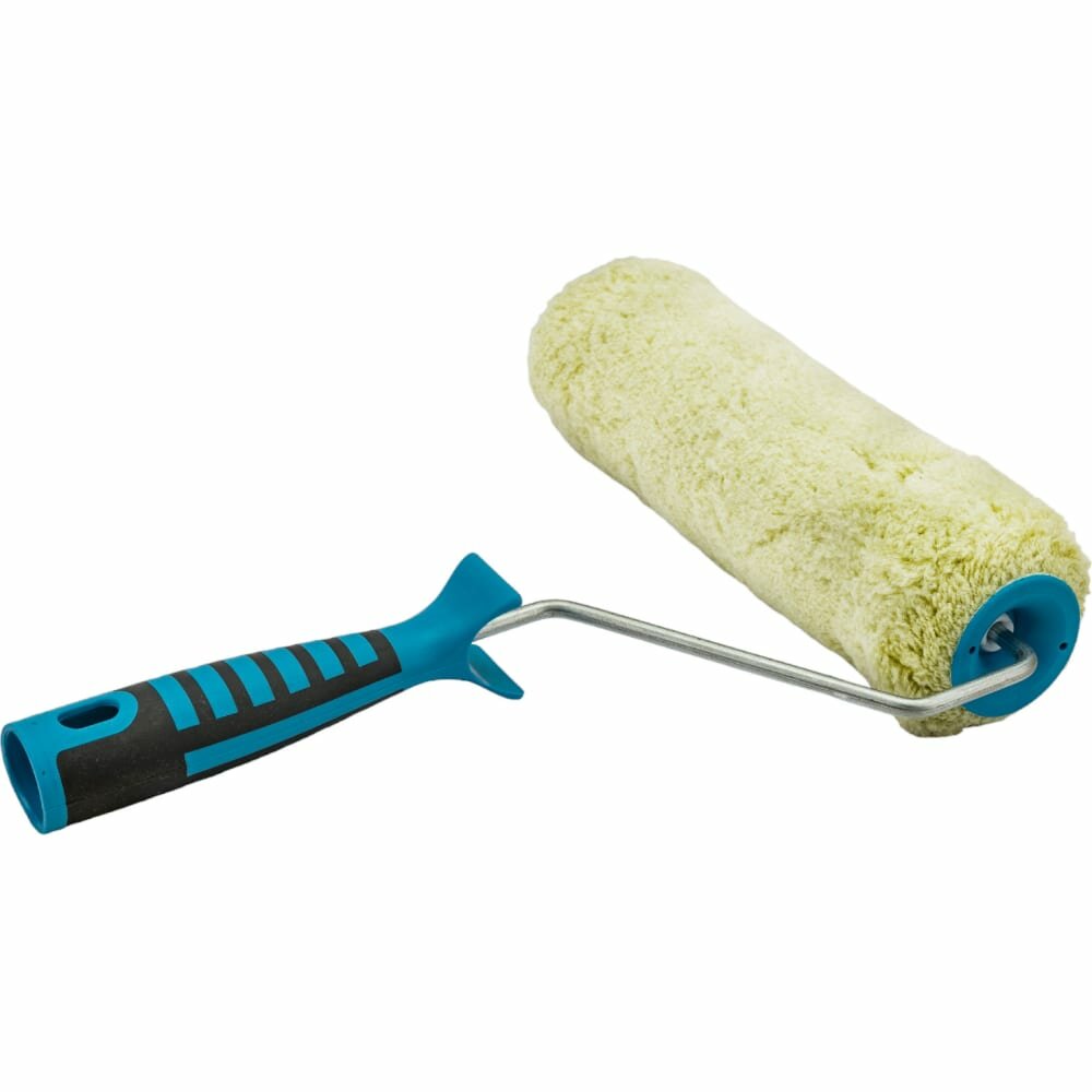 Произведен по технологии Termofusion. Термически приклеенная шубка валика износостойкая и бесшовная, создает идеально ровное покрытие. Улучшенная конструкция ролика обеспечивает легкое и свободное вращение. Материал шубки валика ― полиакрил. Применяется для работ с водно-дисперсионными красками и красками на основе химических растворителей. Предназначен для нанесения краски на неровные грубые поверхности. В комплекте двухкомпонентная ручка, бюгель оцинкован.