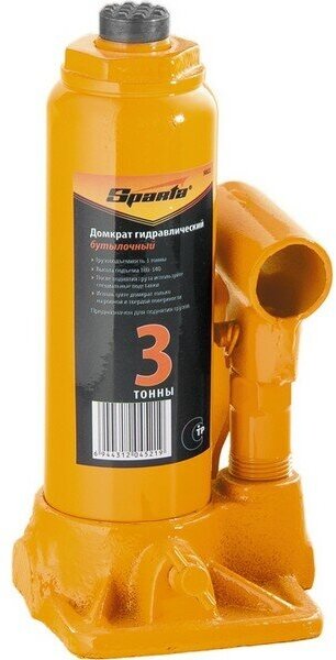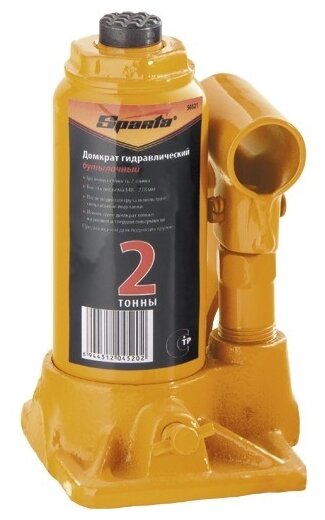Гидравлический домкрат SPARTA предназначен для подъема груза массой до 2 тонн. Домкрат является незаменимым инструментом в автосервисе, часто используется при проведении ремонтно-строительных работ. Минимальная высота подхвата домкрата SPARTA составляет 14,8 см. что позволяет использовать его при работе с автомобилями, имеющими малый дорожный просвет (клиренс). Максимальная высота, на которую домкрат может поднять груз, составляет 27,8 см. Этой высоты достаточно для установки жесткой опоры под поднятый груз и проведения ремонтных работ.